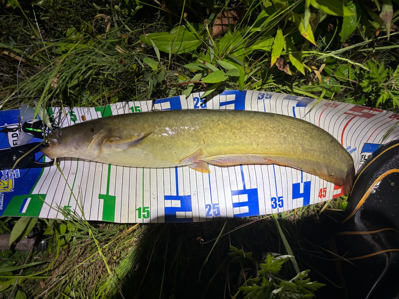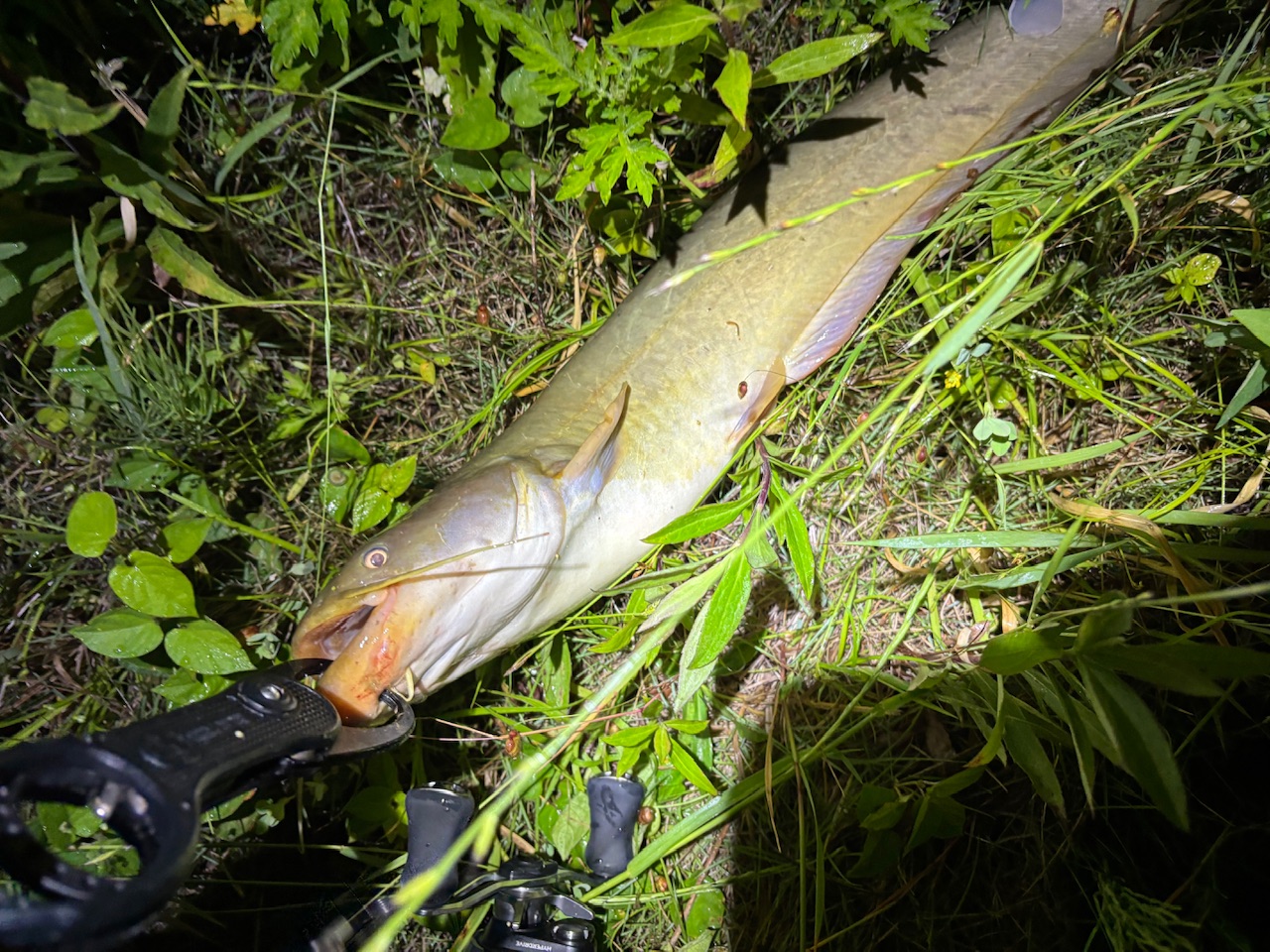 高温多湿で寝つきが悪く、道具を触っていたら、いてもたってもいられず結局、ナマズ釣りに出撃していました(笑)。とはいえ昨日の大雨で濁りと水量が圧倒的に変わっていることと、流れの押しも強いので少し不安でしたが、これらの不安が一投目から払拭されることに♪だがやはりナマズ、出るにはでるが中々乗りません。高活性なこともあり、短時間で少し開拓もして、10発以上でて、何発か針掛かりした中でようやく一匹キャッチできたのはアベレージサイズのきれいな魚体の子でした♪水量も多かったのでどうなるかと思いましたがひとまず満足です。濁りと水量はナマズも高活性になりますが平時と付き場も違ってくるので面白いですよ♪