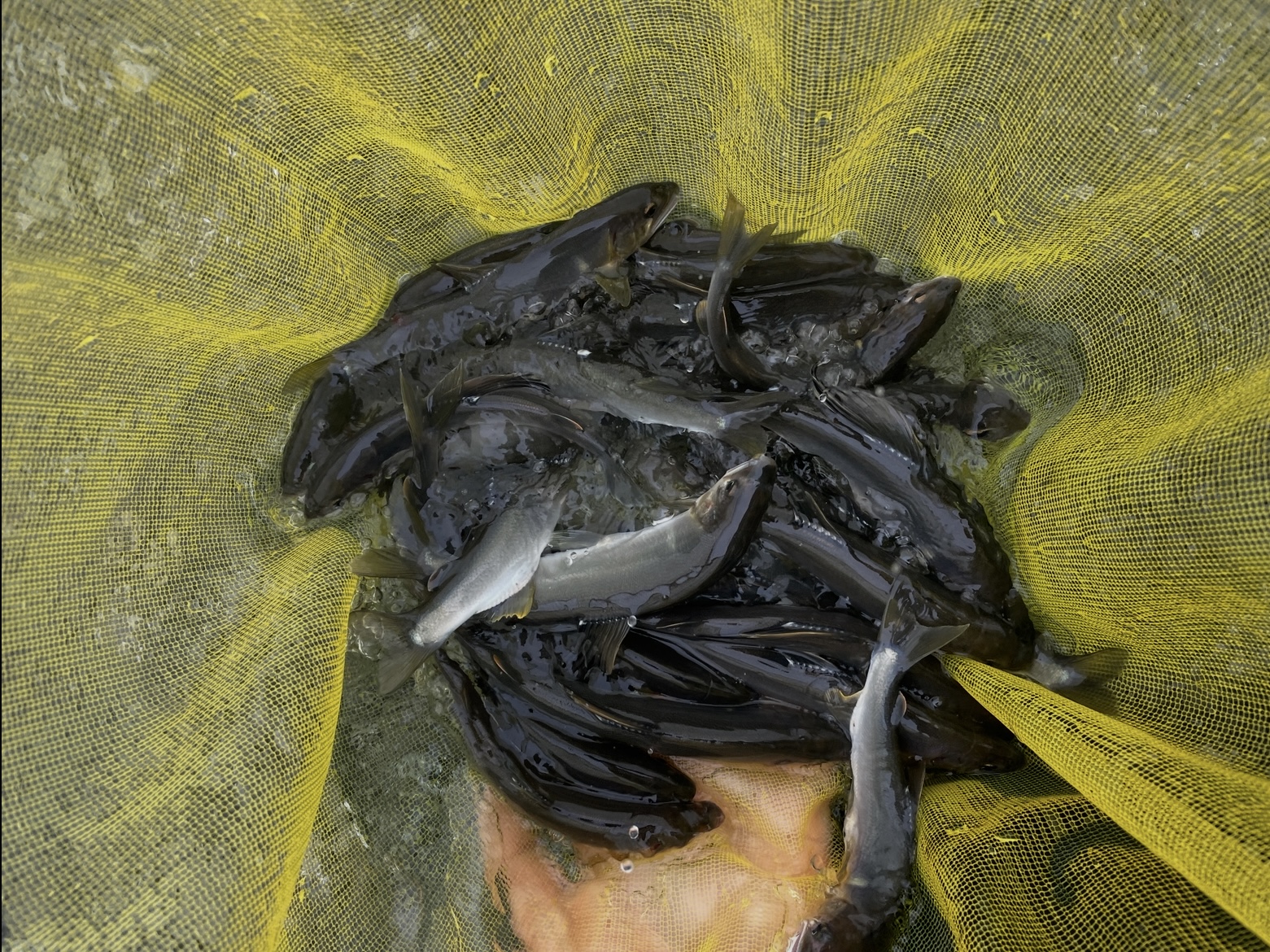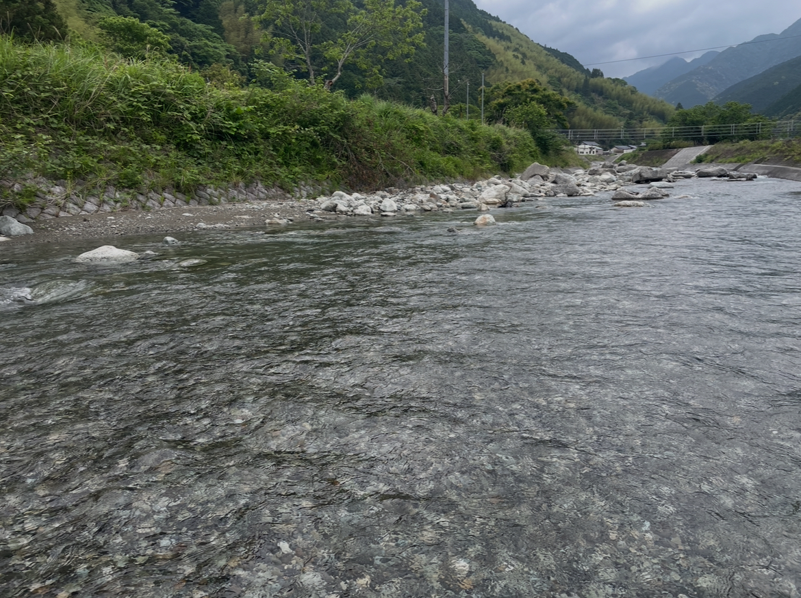 前回入った支流よりも上流に入ろうと川を見ていくと垢が残った本流の浅トロを発見!誰もいないです。9時頃からスタートします。トロ場を泳がせるとすぐ掛かります。4匹ほど掛けますが、全部しっぽにかかる。これは群れ鮎をやらなければ!と今まで逃げ続けていた群れ鮎攻略に!めちゃくちゃ群れ鮎が見えてました。石がポツポツある砂地を泳がせ、群れ鮎と石に着いた鮎を釣り、13時までで23匹。午後は瀬をやってみますが、5匹のみ。その後、瀬が難しいので、午前やったトロ場をもう一度釣り、最終34匹でした!