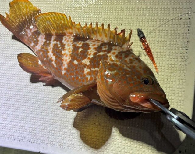 強烈な引きでこれは50アップのキジハタかと思われましたが、まさかのフックアウト。