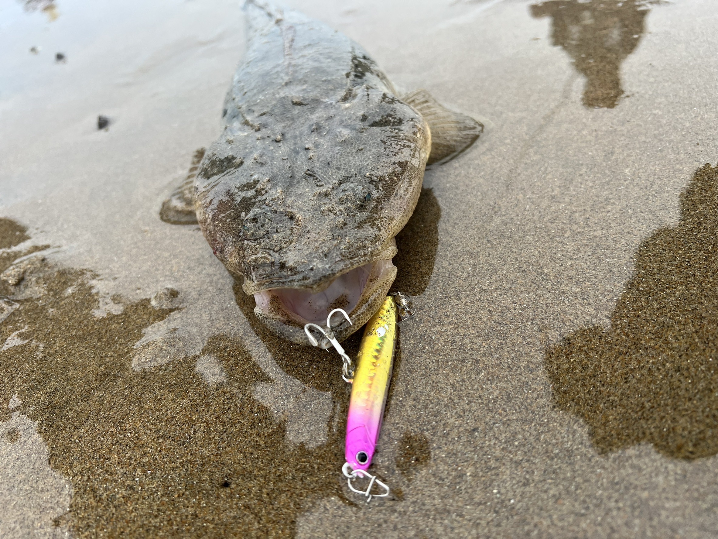 好調の三重サーフへマゴチ狙いに行ってきました!前日までの雨で濁りが少しあり波も高いですが釣り開始!使用ルアーはメジャークラフト様のジクパラサーフ!ブレード付きで余計なことせずに巻くだけで釣れます!