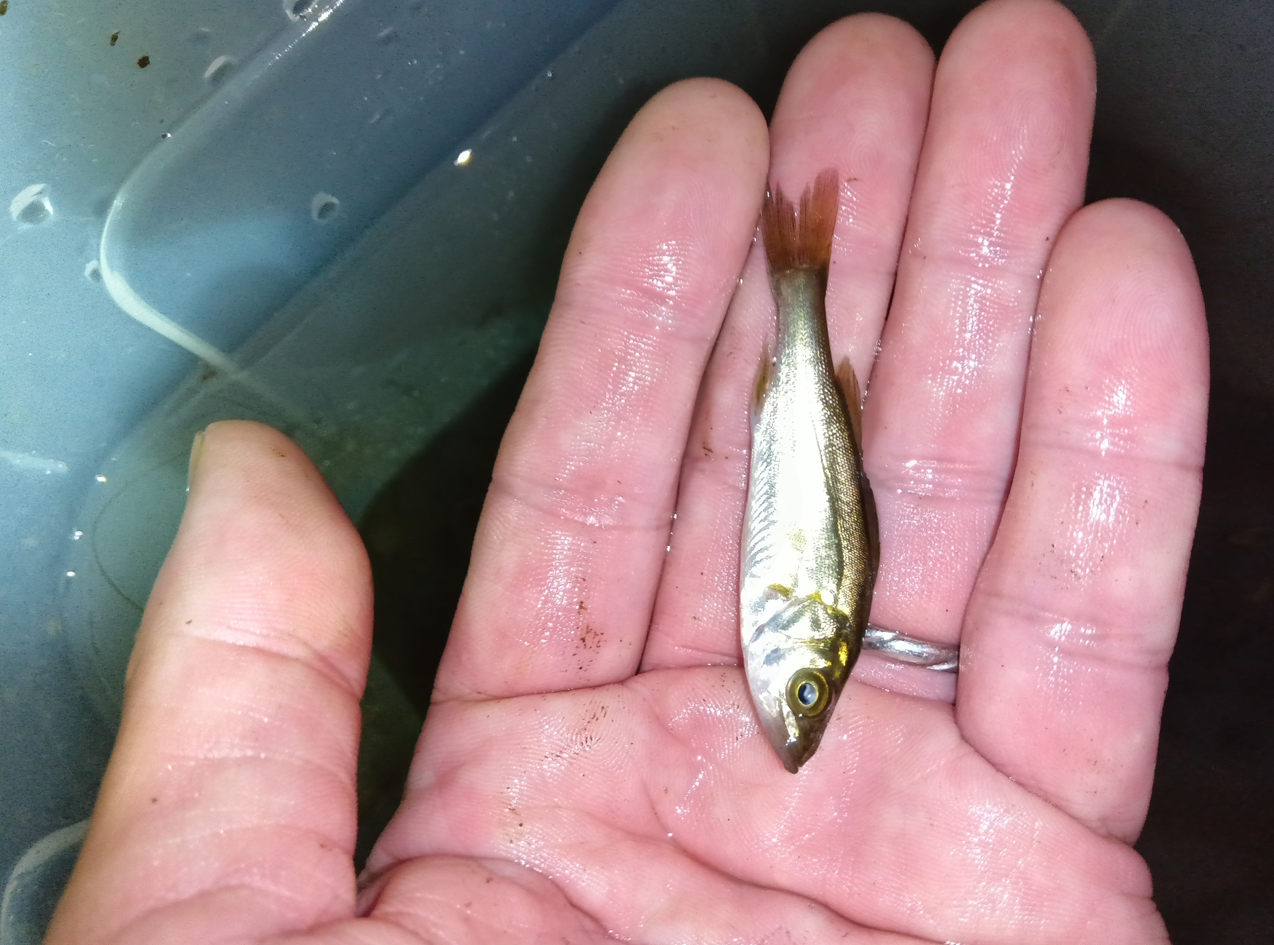 上から見てるだけなので正体を知りたくなり、いつものテナガエビタモではなく魚用のタモまで導入し、手加減無し?ですくいまくり、ハゼ、ボラ、スズキまでGET。