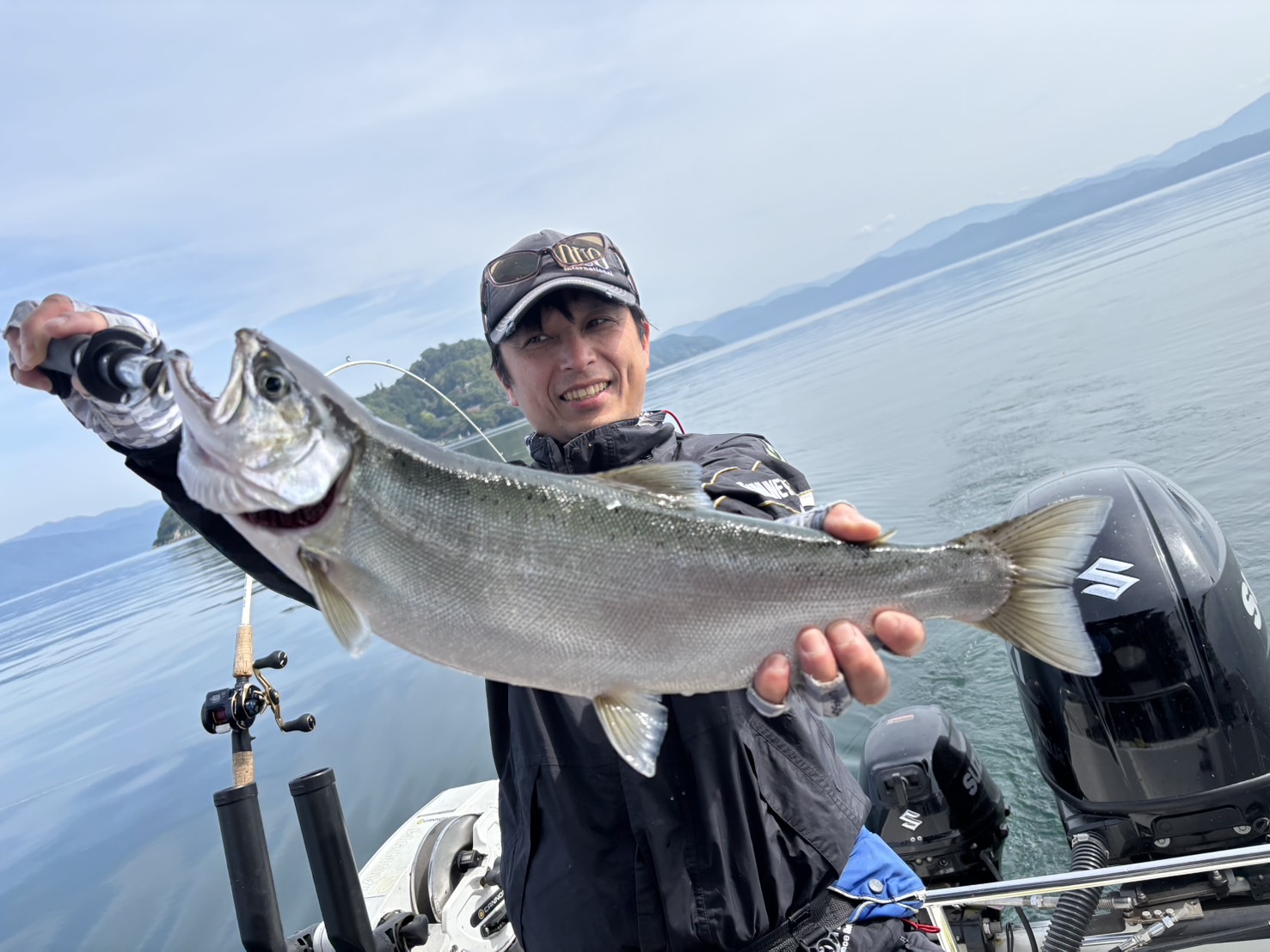 今回は幻の魚『ビワマス』を狙いに、ファイブオーシャンマリーナ出船の『ダフハントエフ』にお世話になりました。