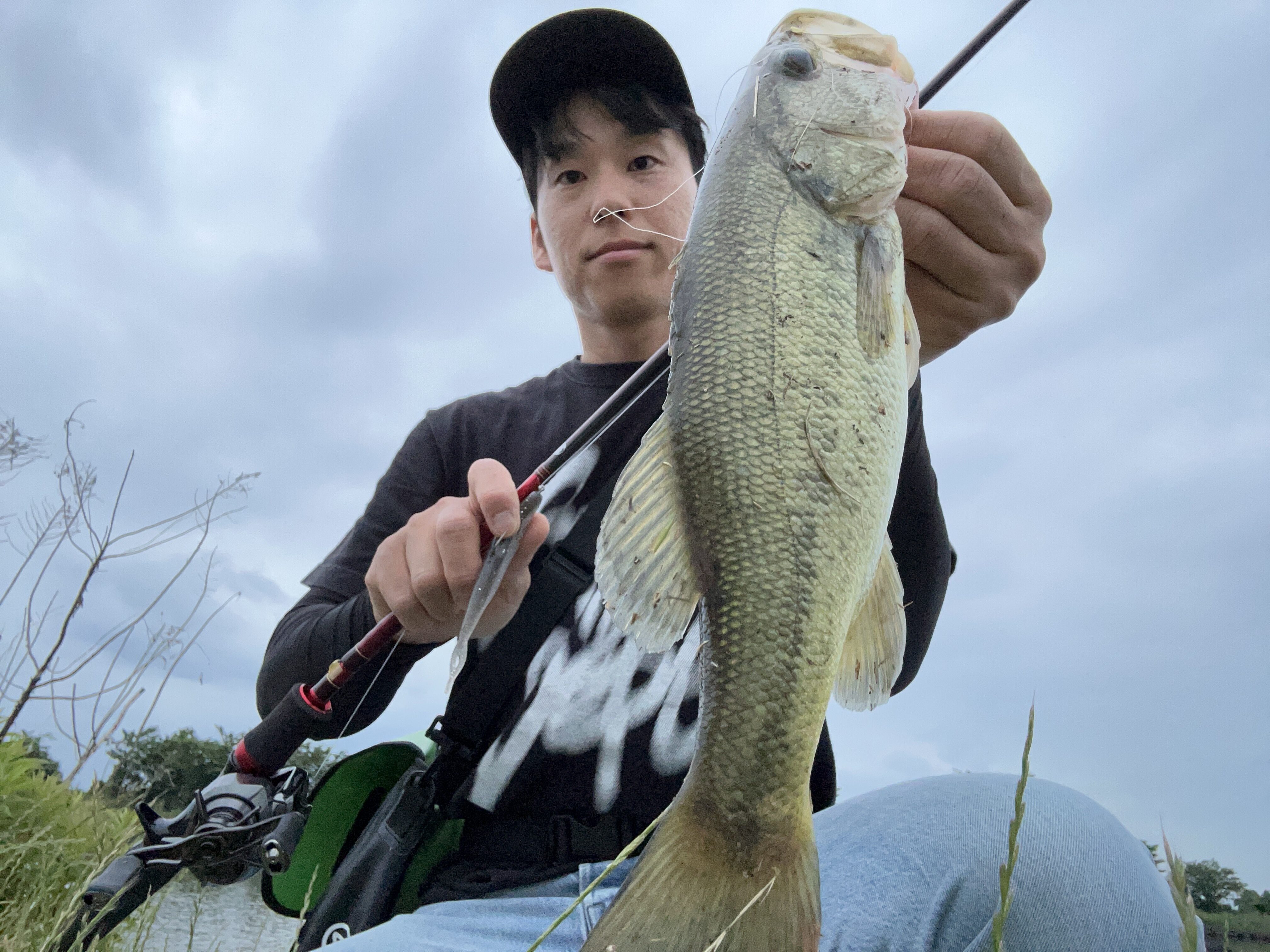 小さなハクのようなベイトがたくさんいて時々ボイルしていたのでボトムじゃないなと思いボックスの中にあったサカマタシャッド5インチで表層をジャークするとバイト!サイズは小さかったですがジャークが止まるあの感じはたまりませんね!