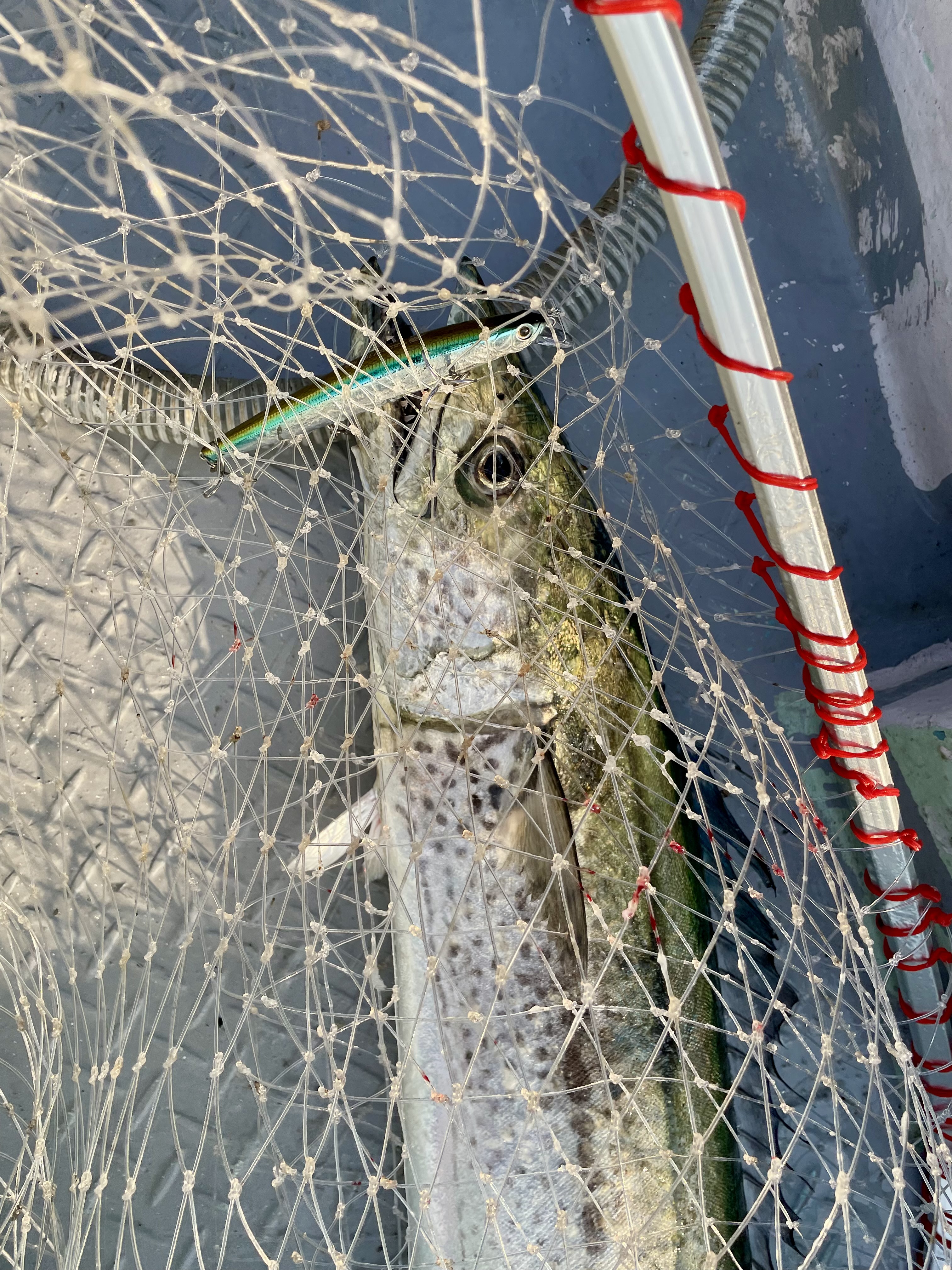 釣り方はジャーキングでの誘い出しで使ったルアーはジップベイツのザブラミノー139SアビレのエメラルドバックシルバーとTKシースルーラメ/LHでした!