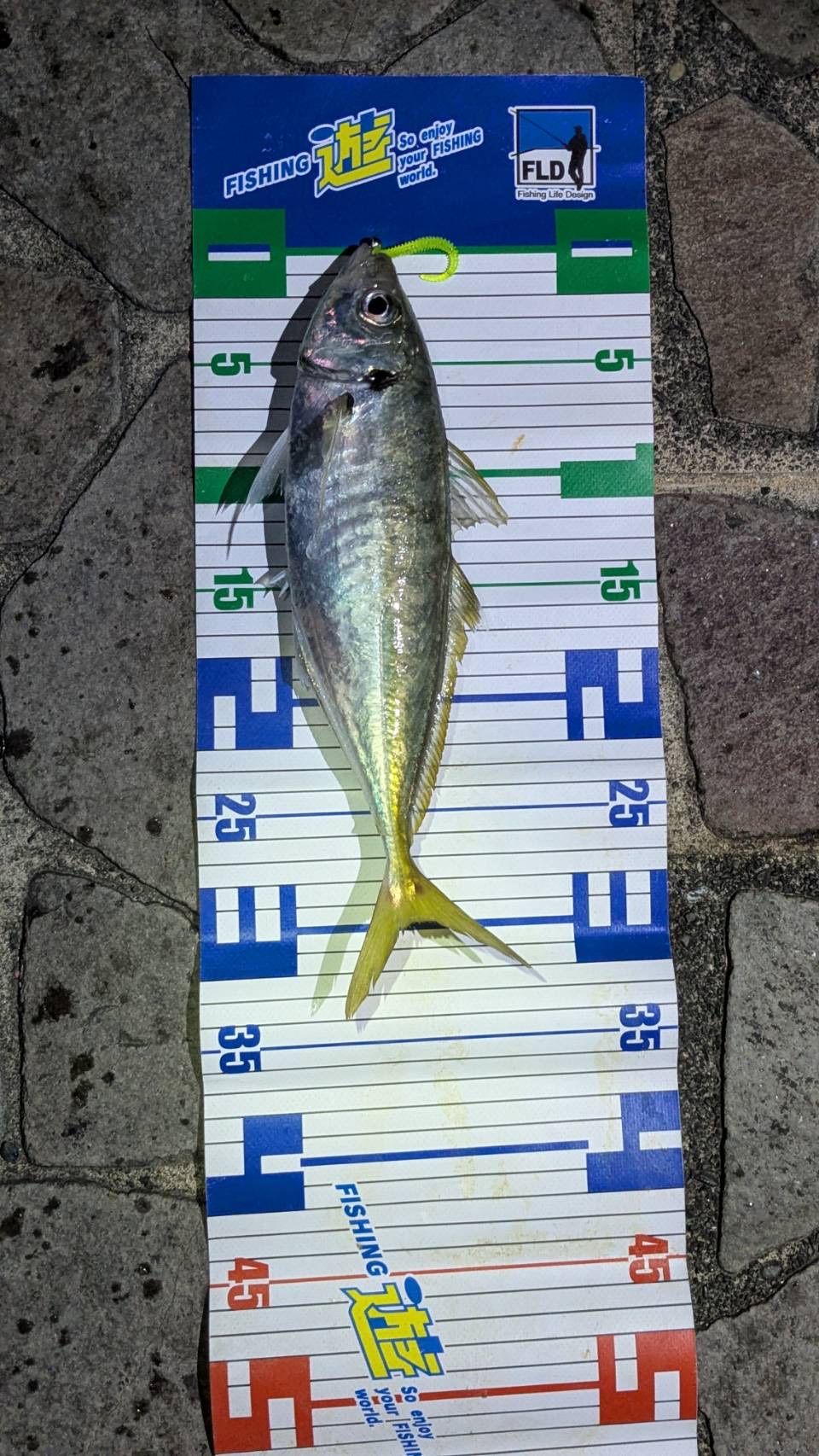 ジグヘッドは1.5g〜3.0gまであればオッケー!時合いまで時間があったのでカサゴを釣りながら待ちます。潮が緩んだタイミングで周りがポツポツ釣る中、時合い終了間際にギリギリ尺アジゲット!今年はベイトも多く期待できそうです。