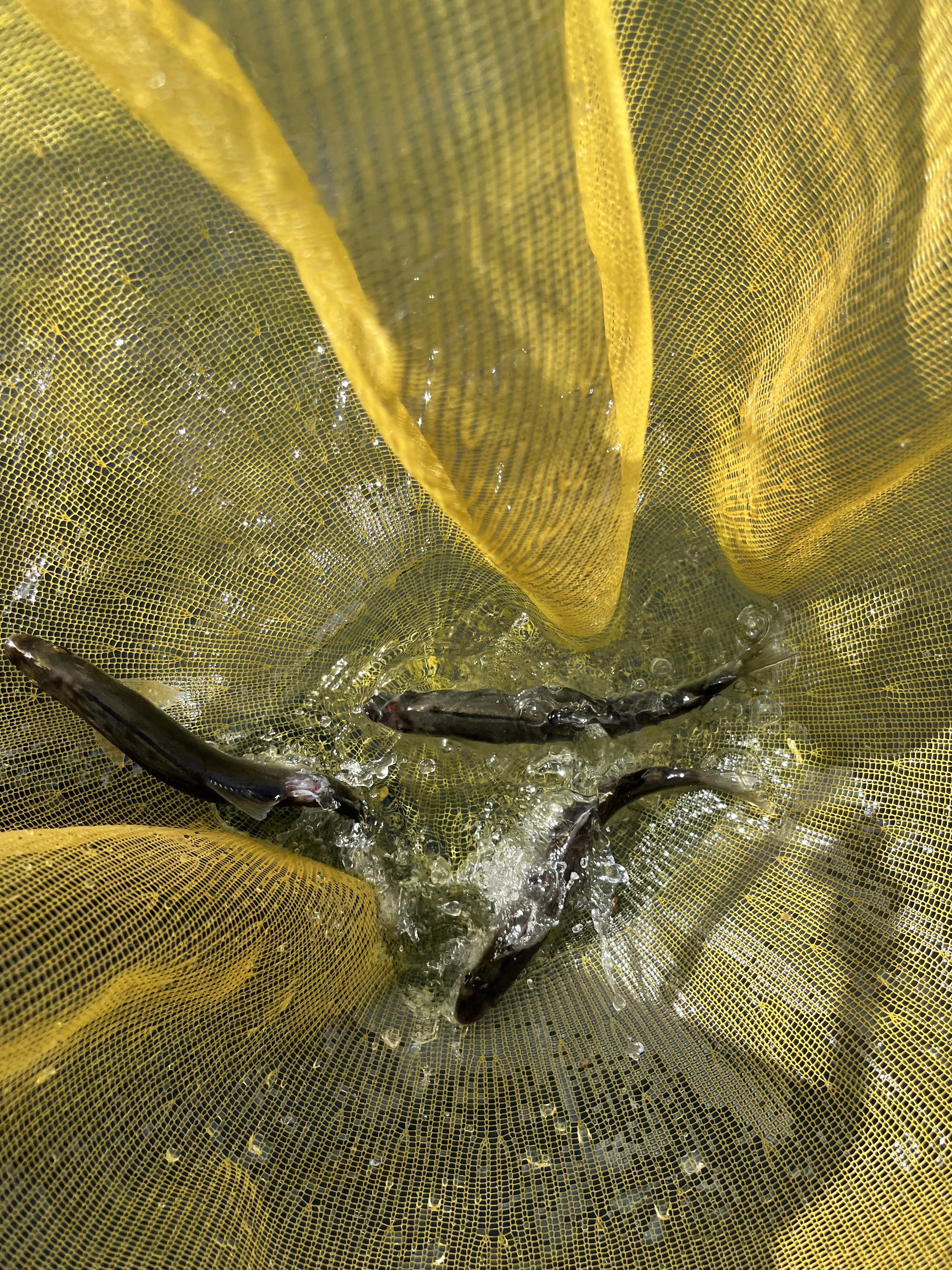 その後も同じで大きく場所移動。チャラ瀬の所にギラギラする鮎の群れを発見!
