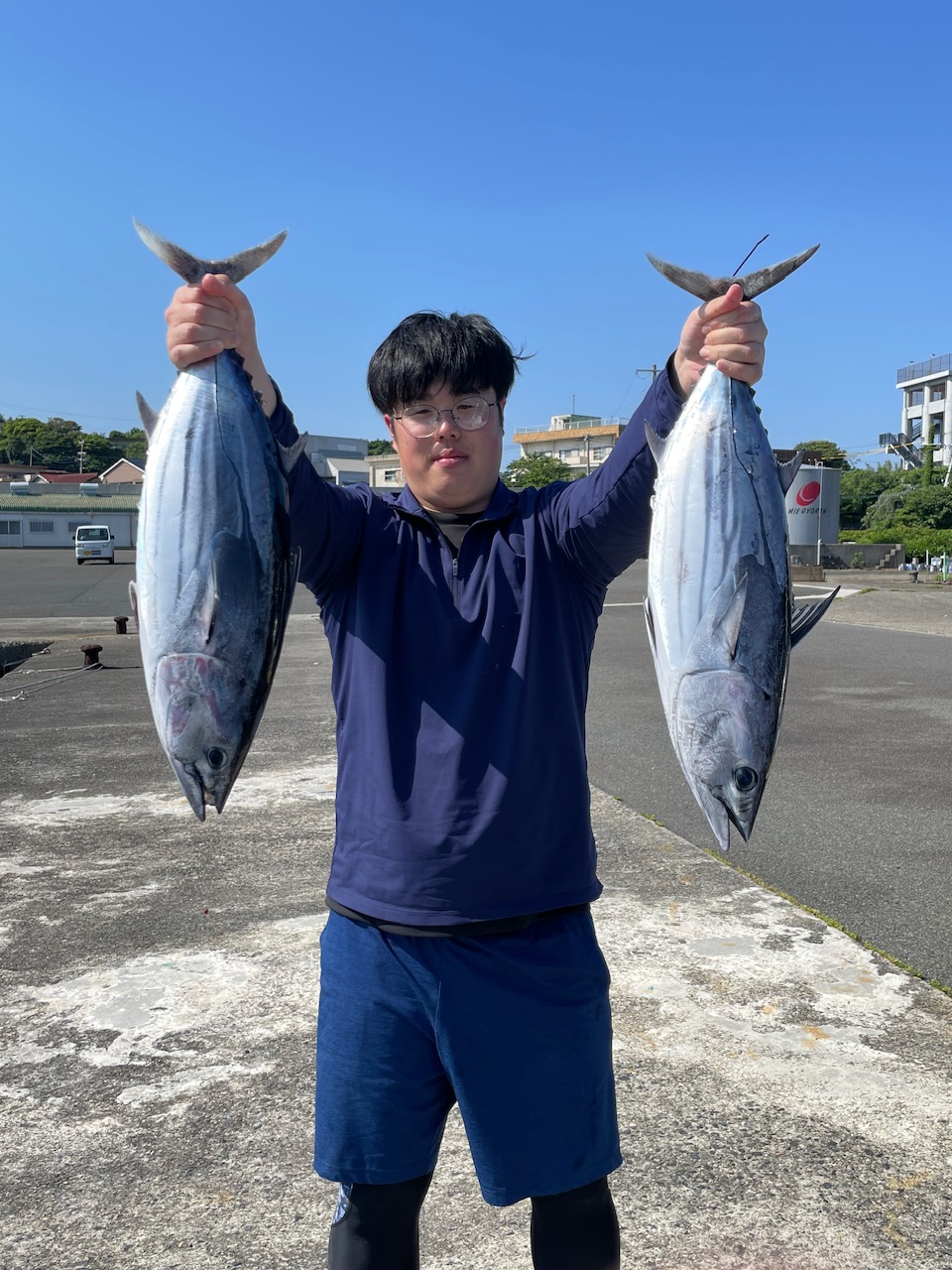 終盤になりこのまま終了かと思いましたが前方に鳥山が!船長が船を走らせた途端!鳥山ではなく足元でカツオがボイル!急いで船を止めキャスト!すると津店の安田さんがお目当ての大判カツオをヒット!!お見事でした!さらにカツオを追っかけてまたキャスト!次は松阪店の澤崎さんにヒット!!これも大判!!はやく自分も釣りたいと思いキャスト!ナブラのど真ん中に!!これは食うやろ!!って思いスキッピングさせるとヒット!!強烈な引き!!あがってくるとお目当ての大判カツオ!!吐いたベイトは爪の先くらいマイクロベイト、、こりゃ激ムズナブラかな?と思い