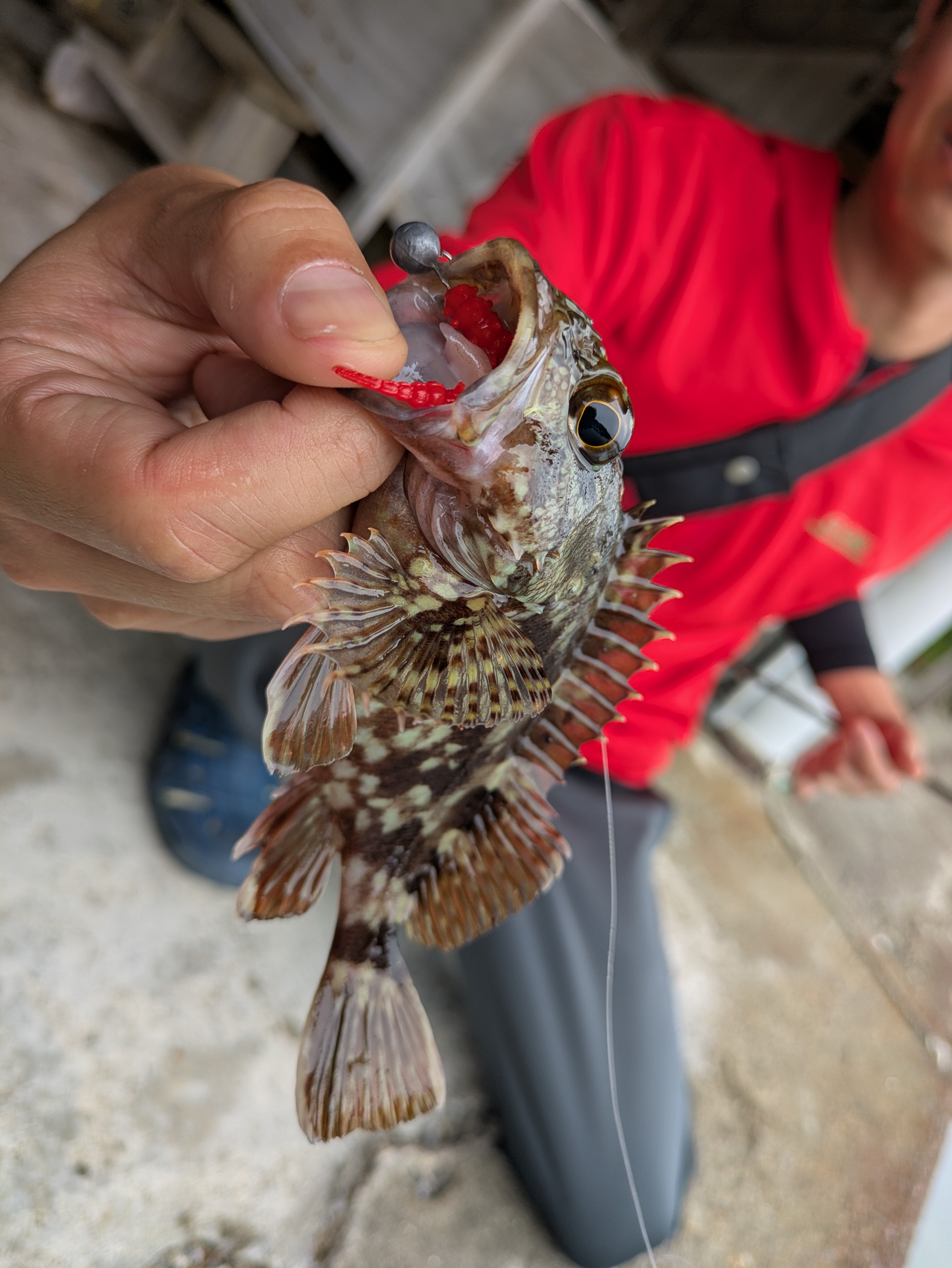 いつもの海毛虫で探ります!やはり高活性!!海毛虫にカサゴが飛びついてきます!