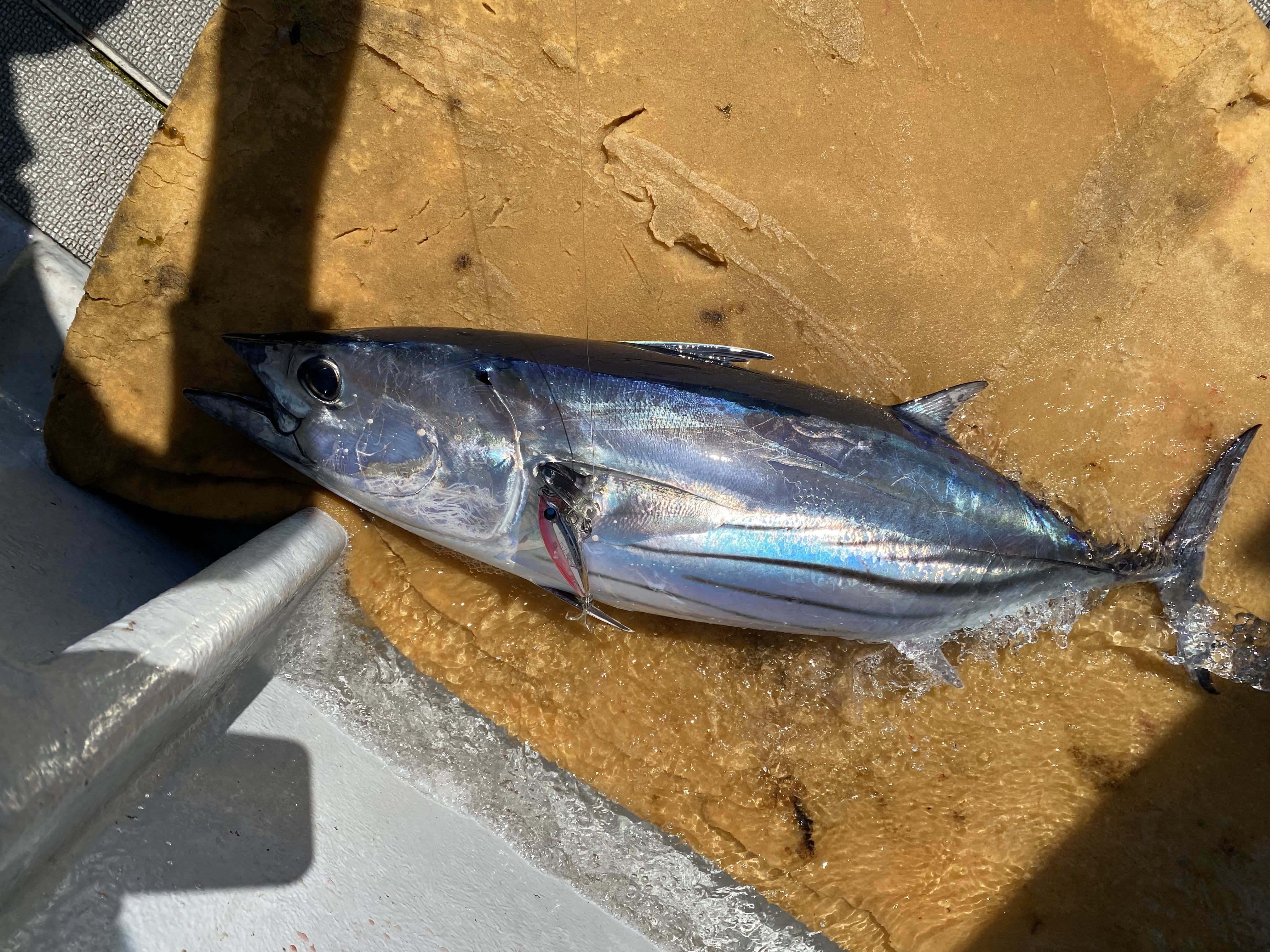 船べりで感じたことない強い引き!なんとか猛攻を耐えキャッチ!見事な大判カツオでした。