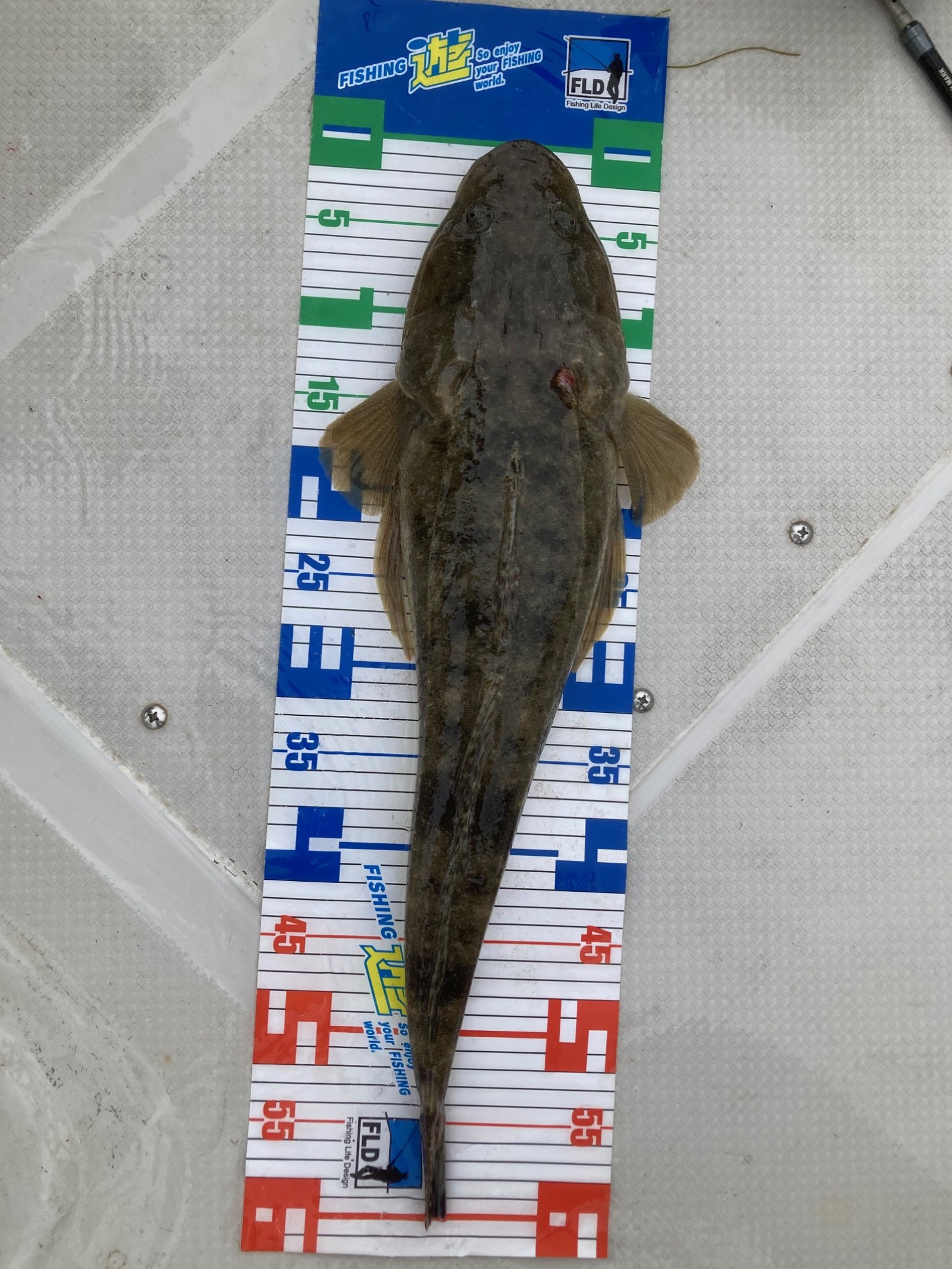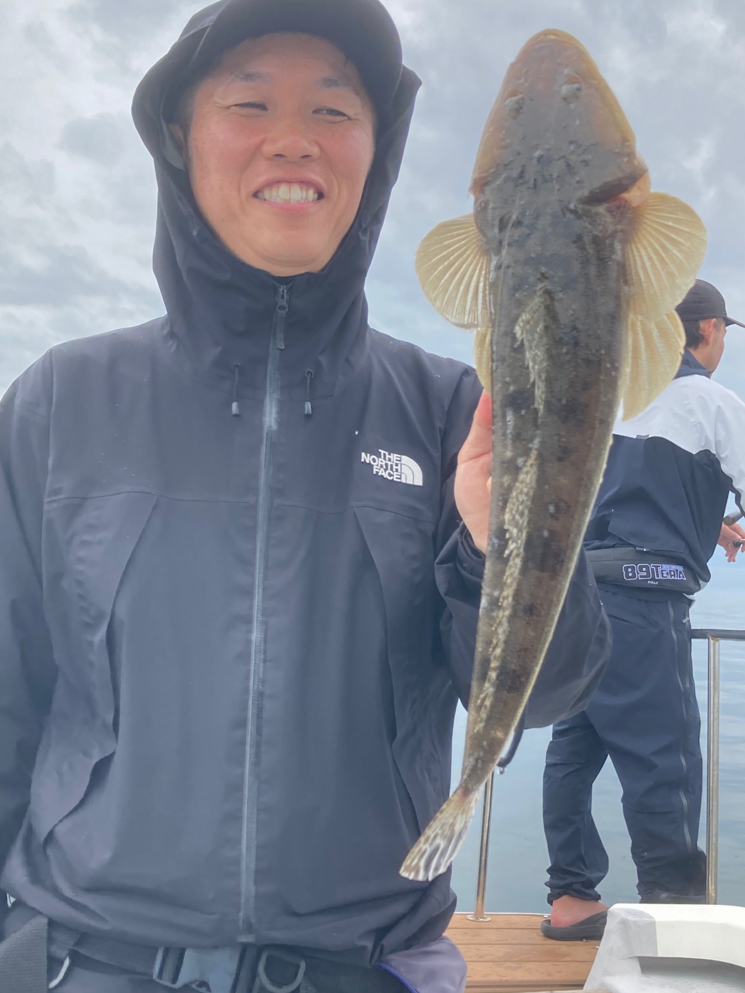 タコのポイントまで遠いので先にマゴチ狙いに。バルト3.5インチにスイミングテンヤ30gでやりましたがアタリなく、船長さんにコレ良かったら使ってみて下さいとSSギル3.6インチにグライディ―30gをセットした物を使わせていただくと!?なんと初マゴチでロクマルが釣れてしまいました!超嬉しい☆さすが池田船長ほんといつも良い思いをさせていただいてありがとうございます。