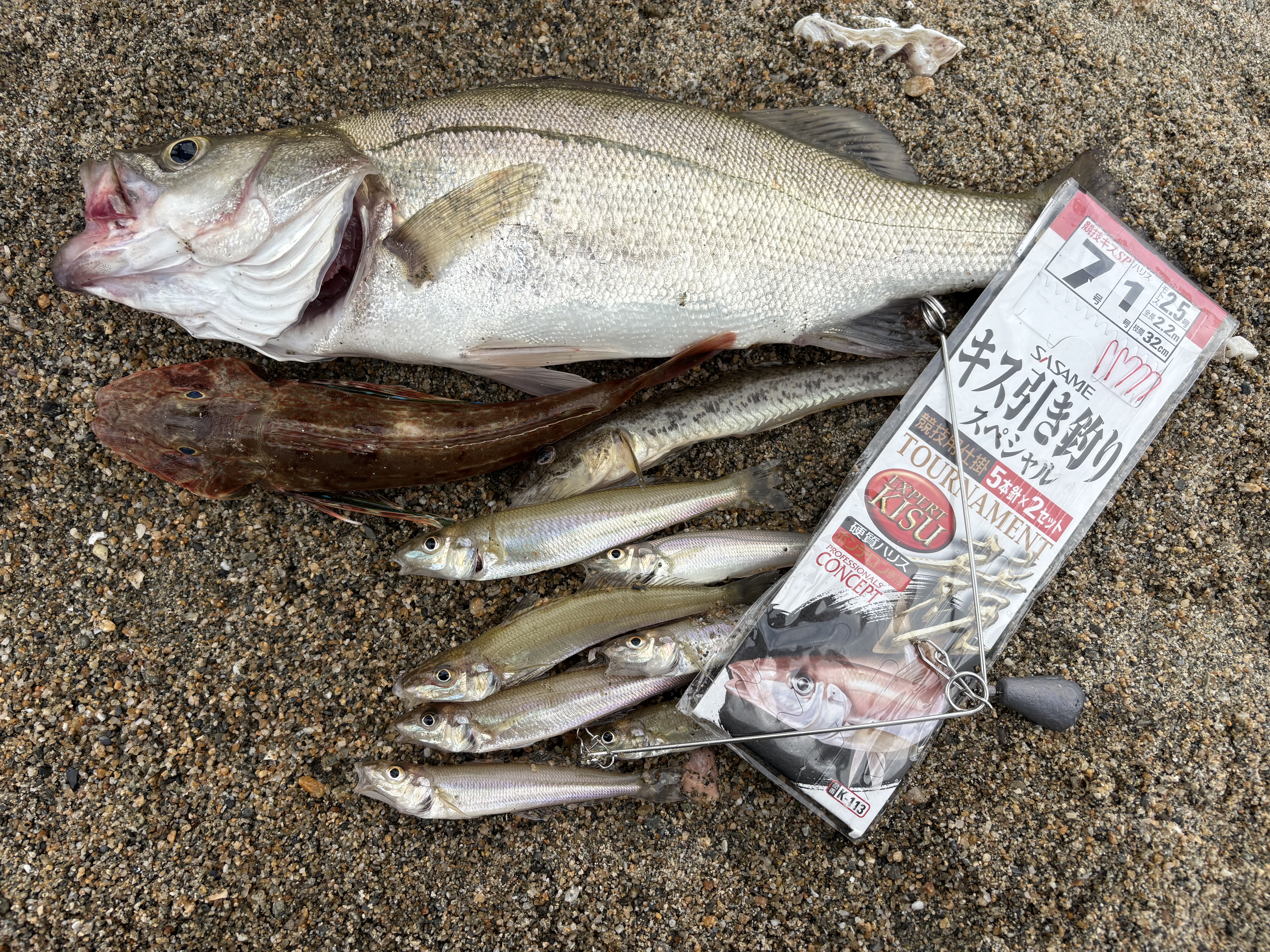 少し歩いて移動をし、オモリを8号に変更して投げると、1投目からあたりが。丁寧に探っているとヒット。やっとシロギスの姿が確認できました。その後もセイゴやホウボウなども追加でき、5目以上釣ることができました。