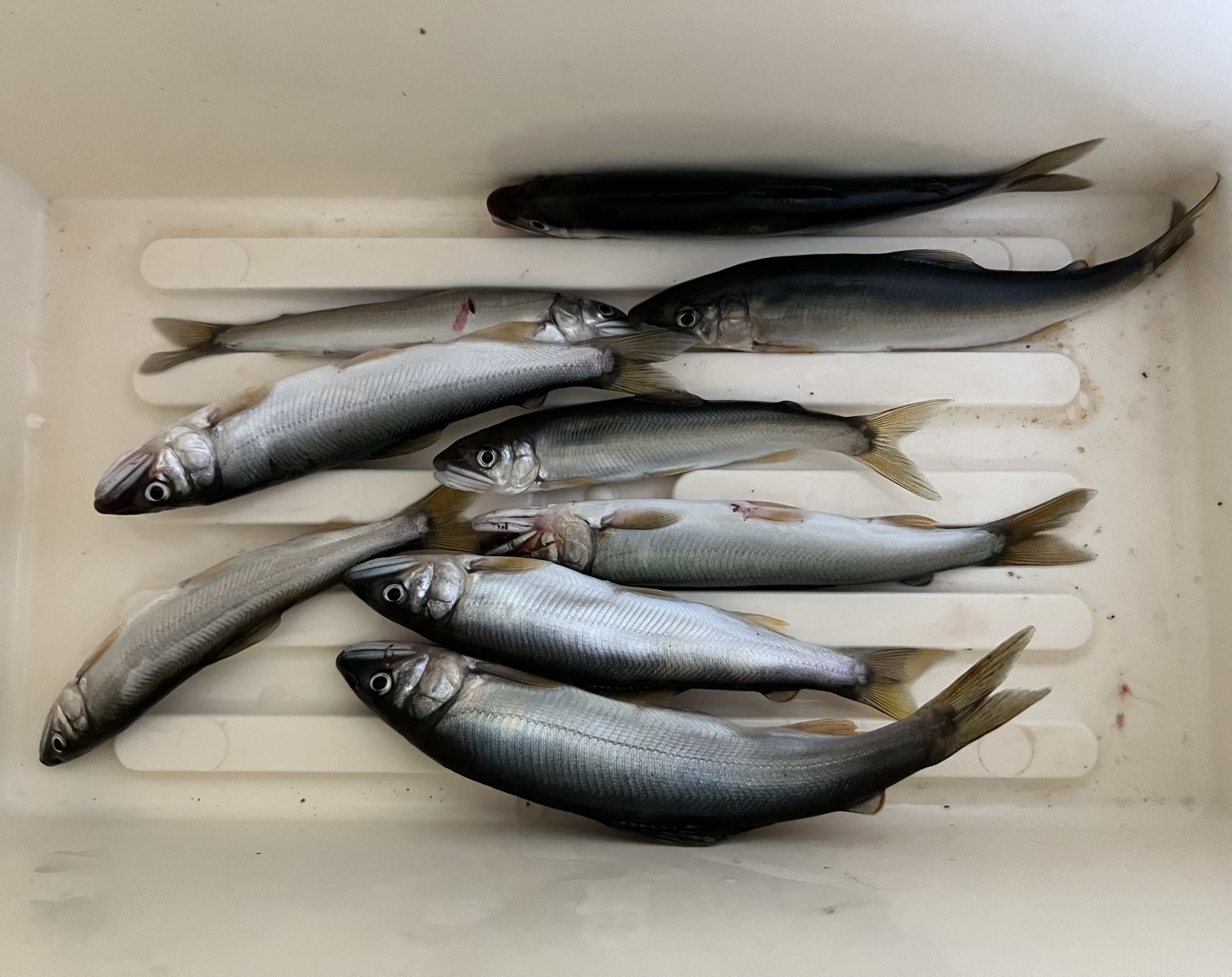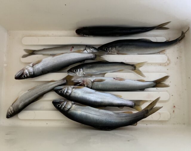 14時を過ぎたあたりから瀬に差してくる群れの中に止めて連続ヒット!15時30分くらいまでやって最終9匹で納竿。