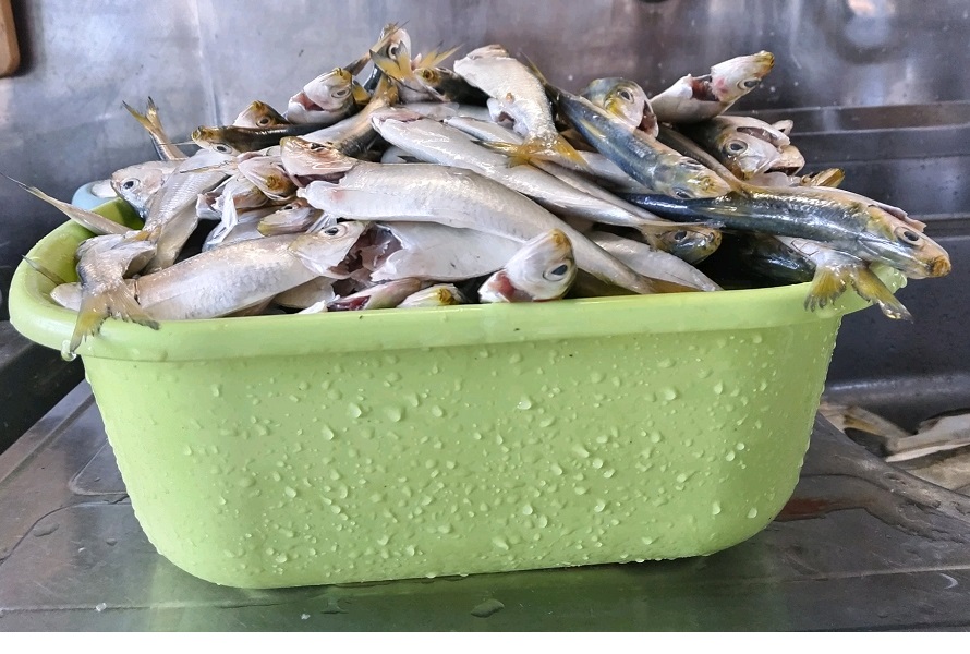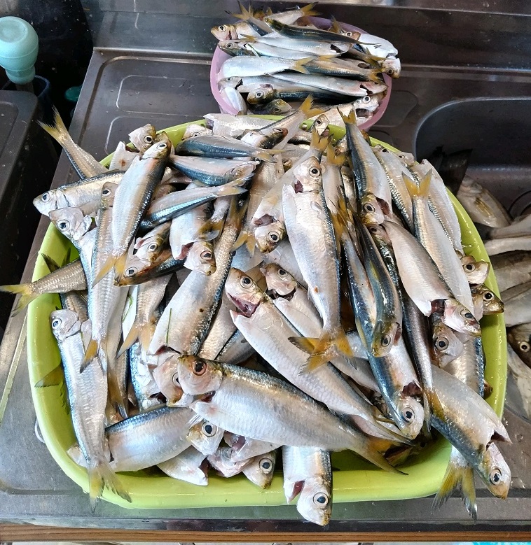 日が出ると危険レベルの熱さの中サッパを全力で狙います!ママカリサビキを半分にして4本針で群れを探していると見つけました~2連3連と掛かり出し 今回は全て血抜きをしながら確保していきます。時折4連もあり調子良くサッパが掛かります。やはり専用のサビキは強い!しかし日が高くなるにつれ食いが悪くなって来たので他の場所の様子を見に行くが11匹しか追加出来ず午前中は終了で休憩この時点で145匹です。午後3時頃から開始するのですがポツリポツリと小型が釣れるだけでイマイチ、それ以前に暑さが半端ナイので水分を補給しながら魚を追加していると日が傾き出した頃から3連4連と掛かり出し一気に数を増やし5時半過ぎに体力的に無理— 昼間の釣りは終了です。全体で316匹のサッパを確保出来たので 暑くなるこれからは朝夕を集中的に狙う方がイイですね。
