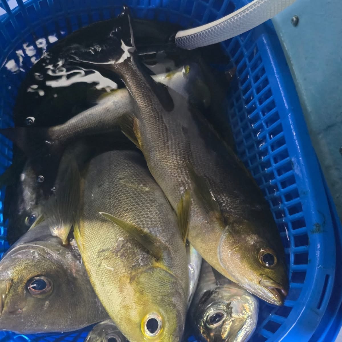 納竿1時間前の時点で5匹くらいの釣果しかなく、最後の1時間でイサギが怒涛の入れ食いという釣れ方でした。
