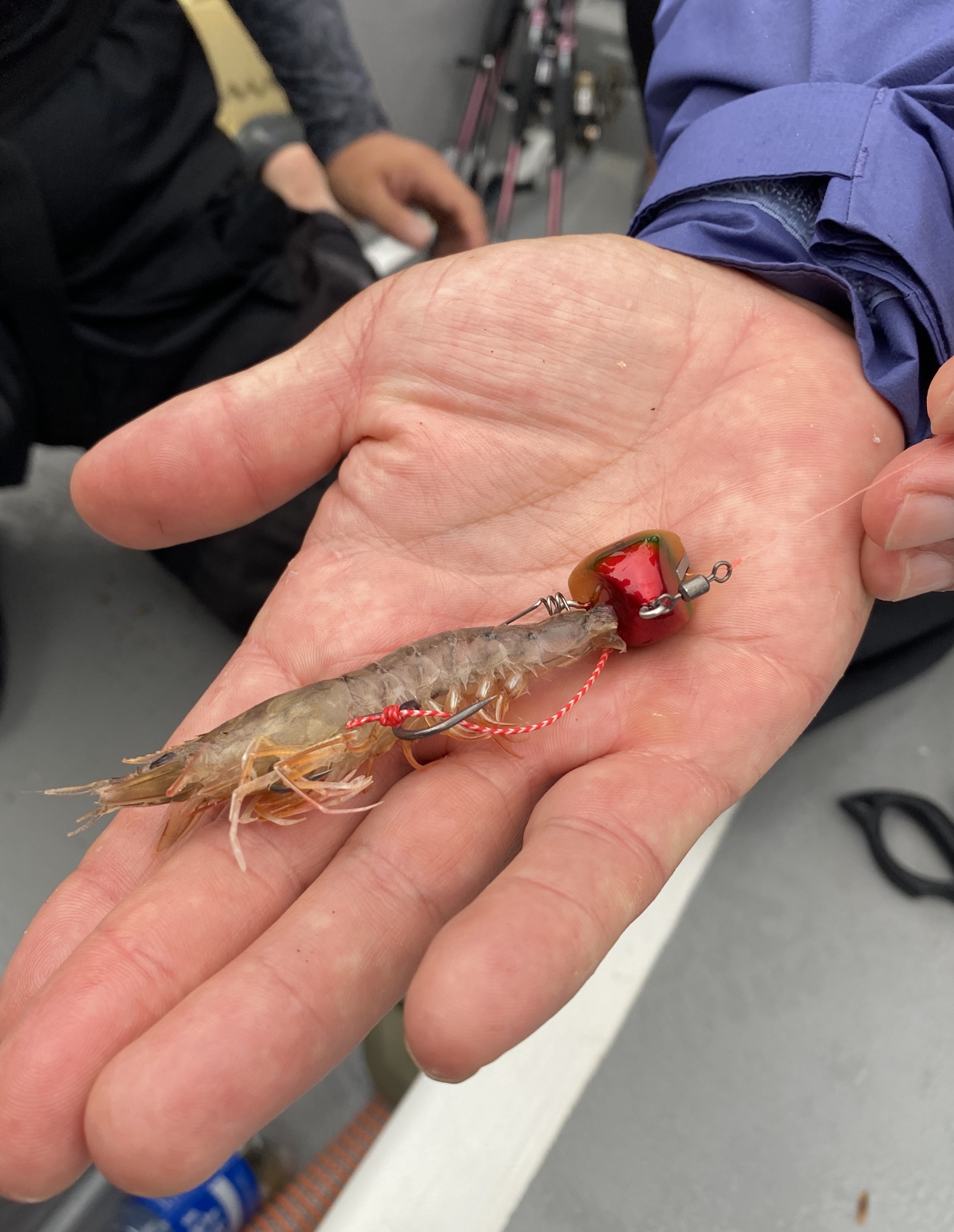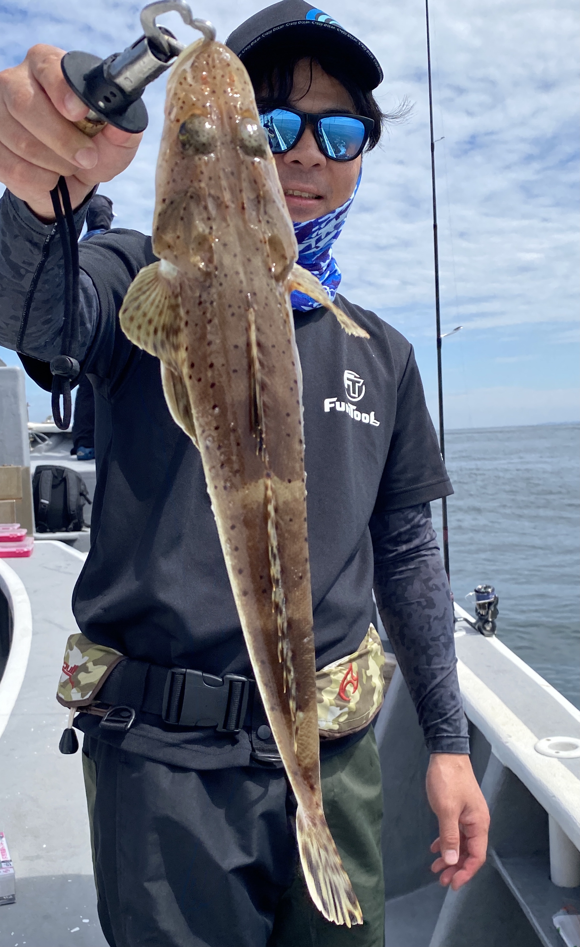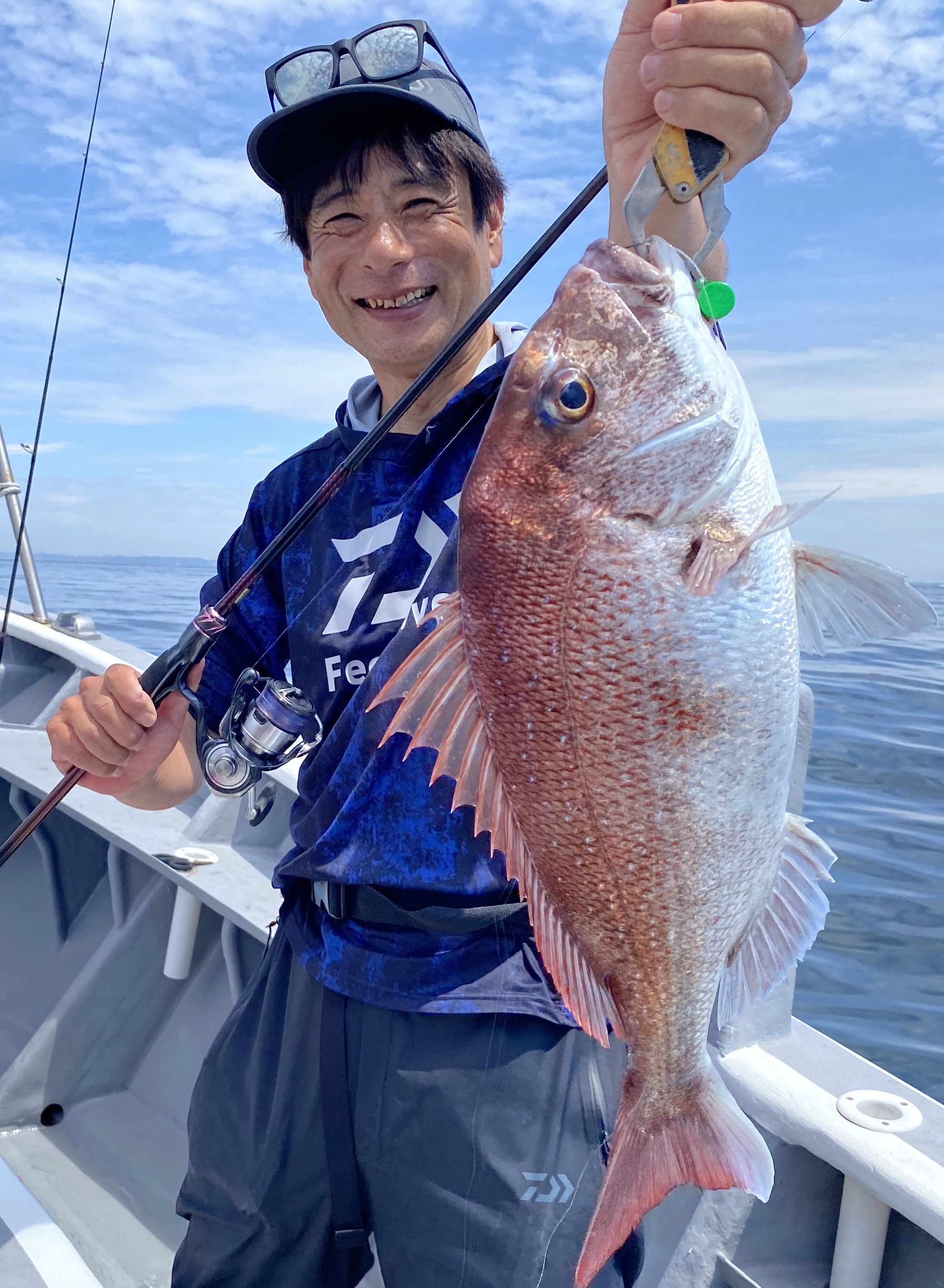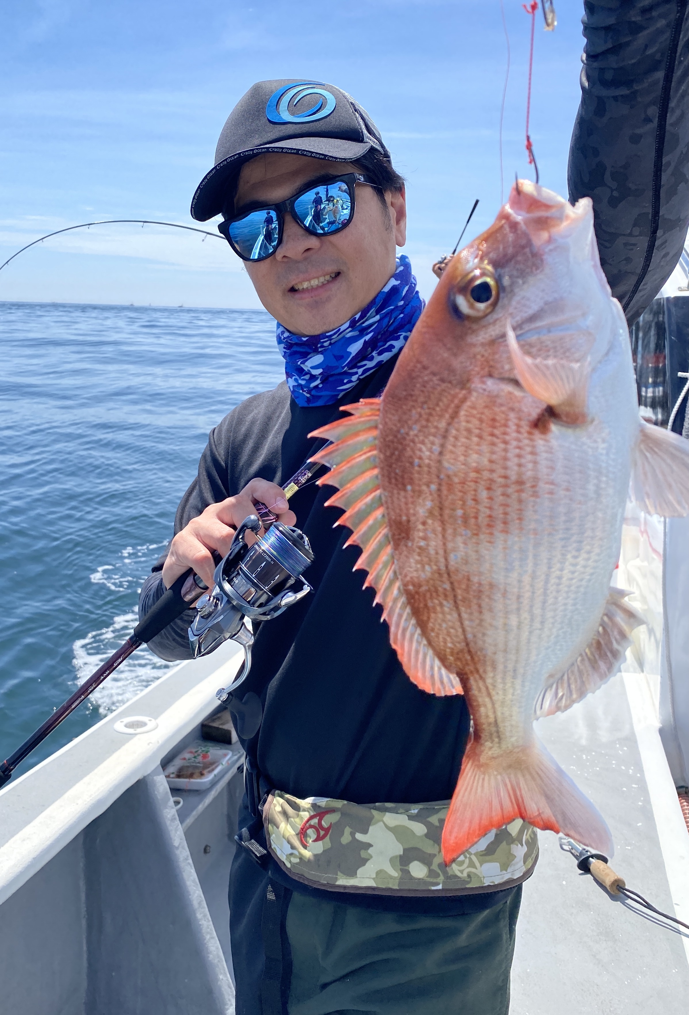 グローブライド様による、タイテンヤの実釣会に参加させていただきました!お世話になったのは片名港出船の忠栄丸様!今年からタイテンヤをはじめ、徐々に人気を博してきているこの釣り。テンヤ釣りは昔に数回やったのですが、知多半島では初めての挑戦!ダイワ様にエサの付け方、釣り方などレクチャーしていただき、釣り開始!まずは紅牙タイカブラSSTB8号の固定式から!ボトムを取ってロッドのストロークでテンヤを上げ下げして誘います。中々アタリがなかったのですが、ボトムの放置で徐々にアタリが出てきた様子!周りでコチやヒラメ、小鯛などが釣れはじめました!こういう時には固定式よりも遊導式の方が良いとのアドバイスを頂いたので、早速チェンジ!しかし自分にはアタリを掛けきれず・・・潮の動き始めで本命ポイントへ移動!上潮が飛び、根が荒く、ボトムに放置しすぎると、根掛かったり、カサゴなどが釣れてしまう為、フォール中心に釣ってみると、ようやく小さいですが本命ヒット!そしてここでダイワプロスタッフの福田さんに大物ヒット!50㎝ほどの良型マダイでした!釣り方を聞くと、「カケアガリの上に棚をあわせて中層で待っていたと」のこと!ボトムで釣るという概念があったので驚きながら同じ釣りを試してみました。すると、他の同船者に次々大鯛がヒットしていく!最大65㎝まで釣れていました!自分はアタリは有ったのですが、時合に乗り切れずタイムオーバー。今回は色々と勉強になる実釣会でした。今後流行っていくこと間違いなしのタイテンヤ!ゲーム性が高く、刻一刻と変わっていく状況にいかにアジャストできるかがカギとなりそうです。まだ未開拓な部分もありますが、より広がっていく可能性を感じました。皆様も是非チャレンジしてみてください。