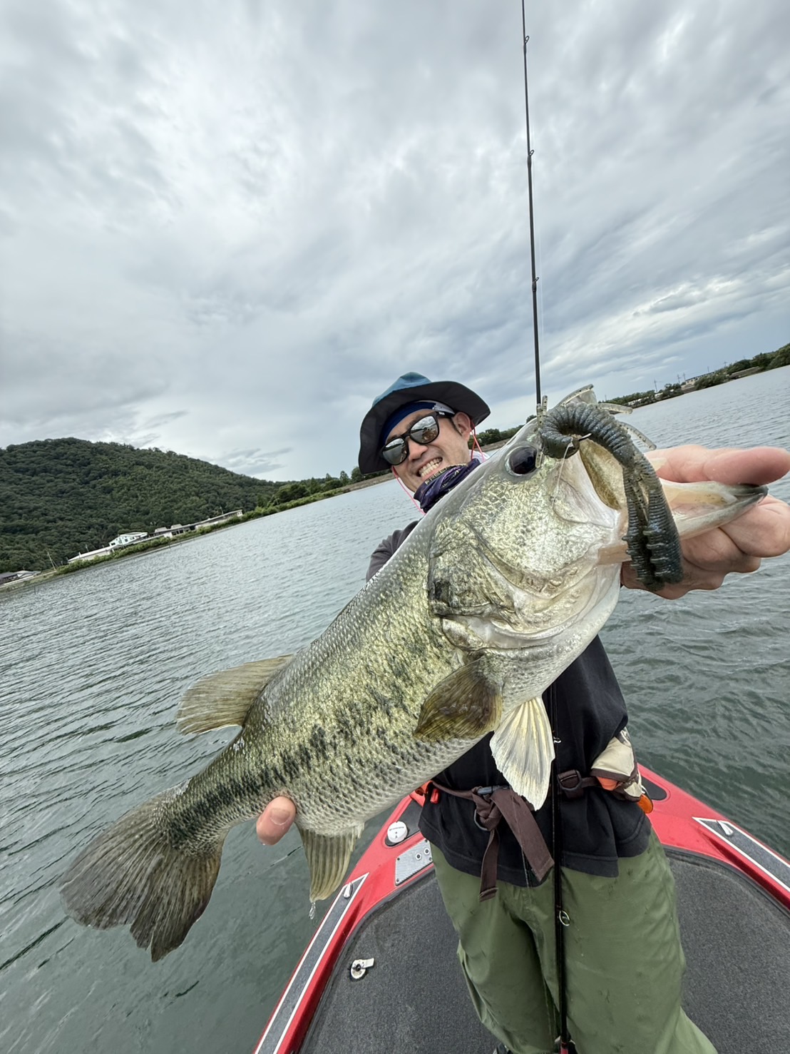 そして、ドラマは最後にやってくる。ラスト15分くらい、見つけたバスはデカい…ワームはスタッガークロー5、同船者はスタッガーワイド3.3。ライブスコープを見ながら狙います。と、突然同船者の竿が!痺れました!60.5センチ✨自己記録更新のナイスバス(メス)!自分が釣ってないのにめちゃくちゃ嬉しい😆感動のビッグバスにて終了となりました。