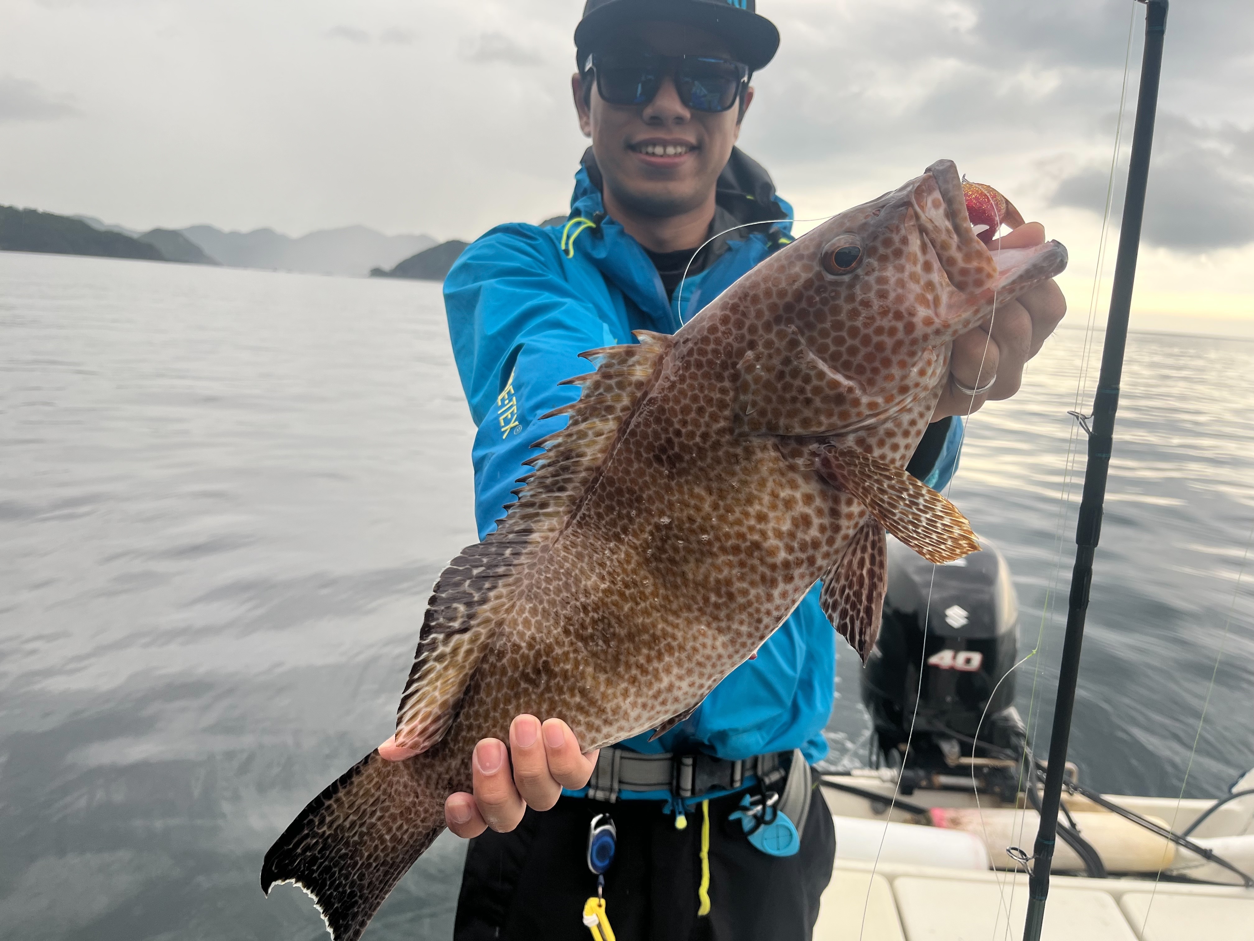 終盤船長がいいポイント発見し、オオモンハタ連発!塚口船長にビッグサイズも!私はよー釣りませんでした。