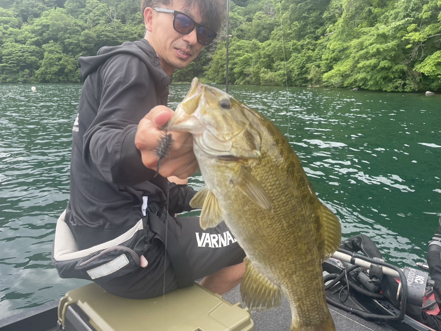 今回は、お初のハイドアップスタッフ・中澤諒さん(ナカリョー)にお世話になりました。朝イチから展開はアツめ。開始1投目¨コイケシュリンプミニ¨のダウンショットにドンッ❗️40アップ❗️その後もコンスタントに釣れ続け、この日釣れたスモールは全てコイケシュリンプミニ❗️しかも全て型揃いで良く引いてくれます。釣り以外にもナカリョーガイドはトーク力も◎終始、笑わせてくれます。野尻湖のオススメガイドさんですよーー。