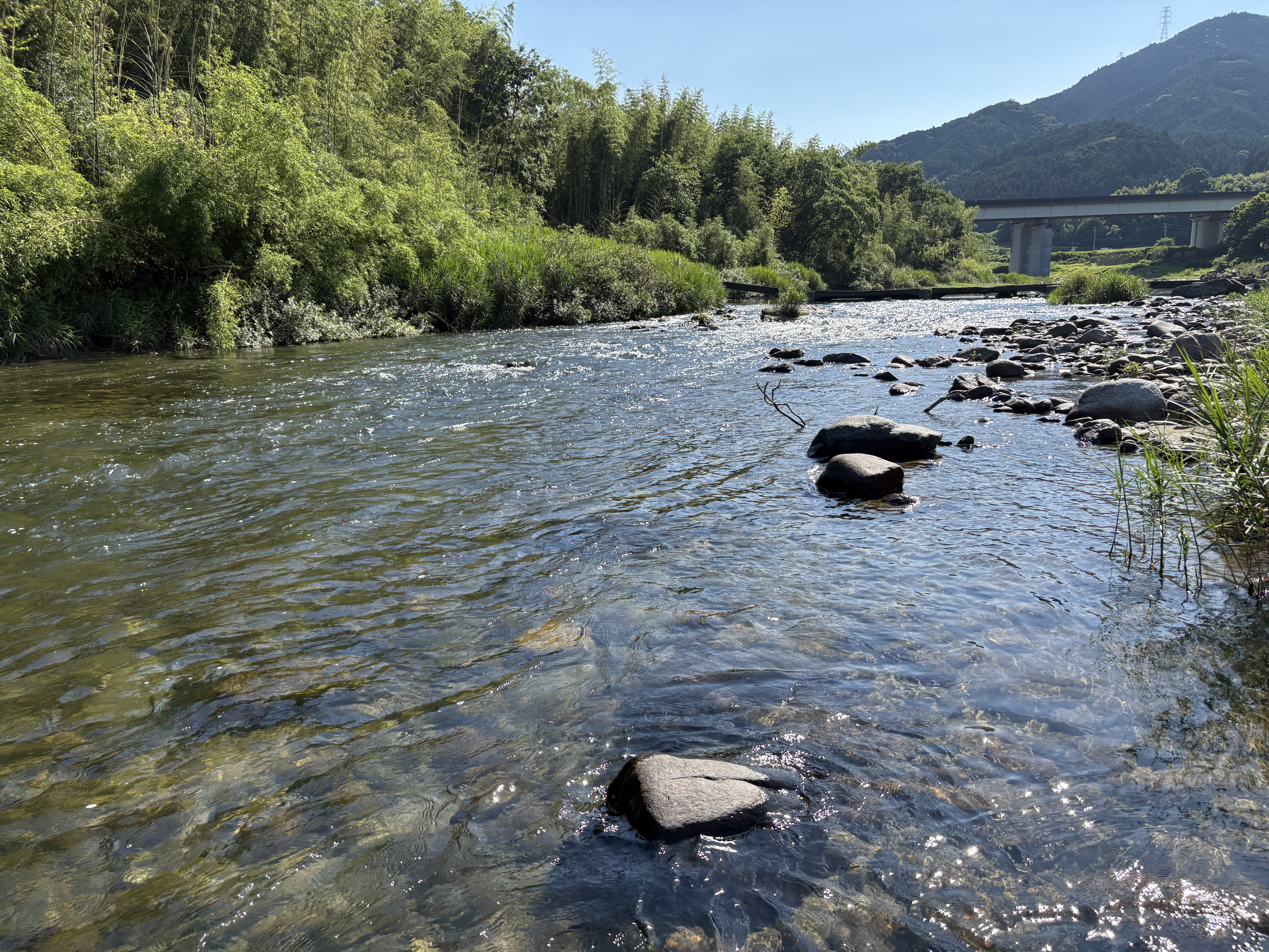 鮎はチラホラ見えるのですが全く追われる気配を感じません