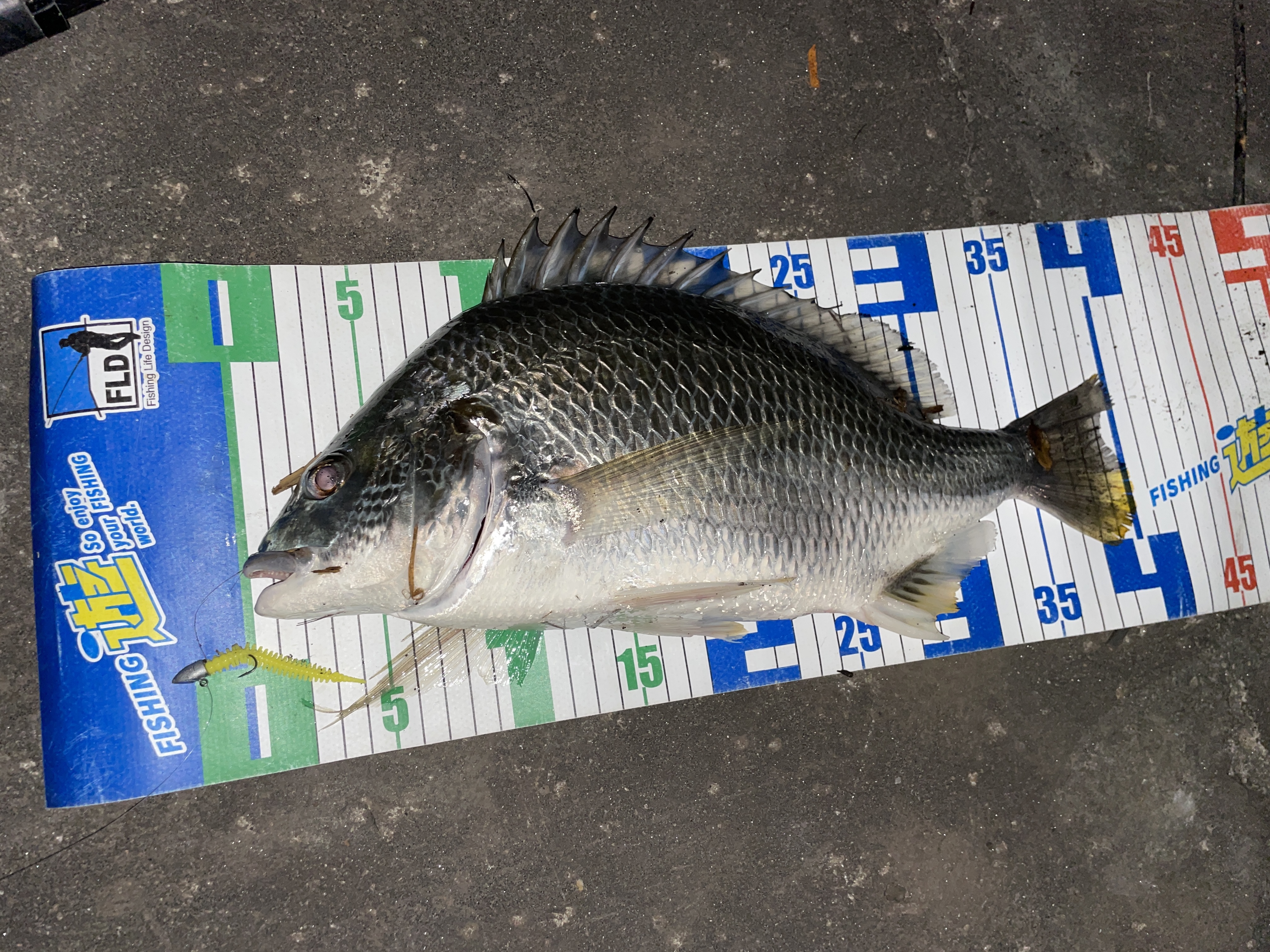 雨後の激濁りの知多半島河川でチニング。大潮満潮20時ごろ。19時に兄とエントリー。私はシンペンやクレイジーフラッパーのフリーリグなどを使用して、黒鯛を狙っていく。兄はジグヘッド3gに海毛虫グローチャートを使用して、狙っていく。浜名湖尺アジングタックルをそのまま使用。