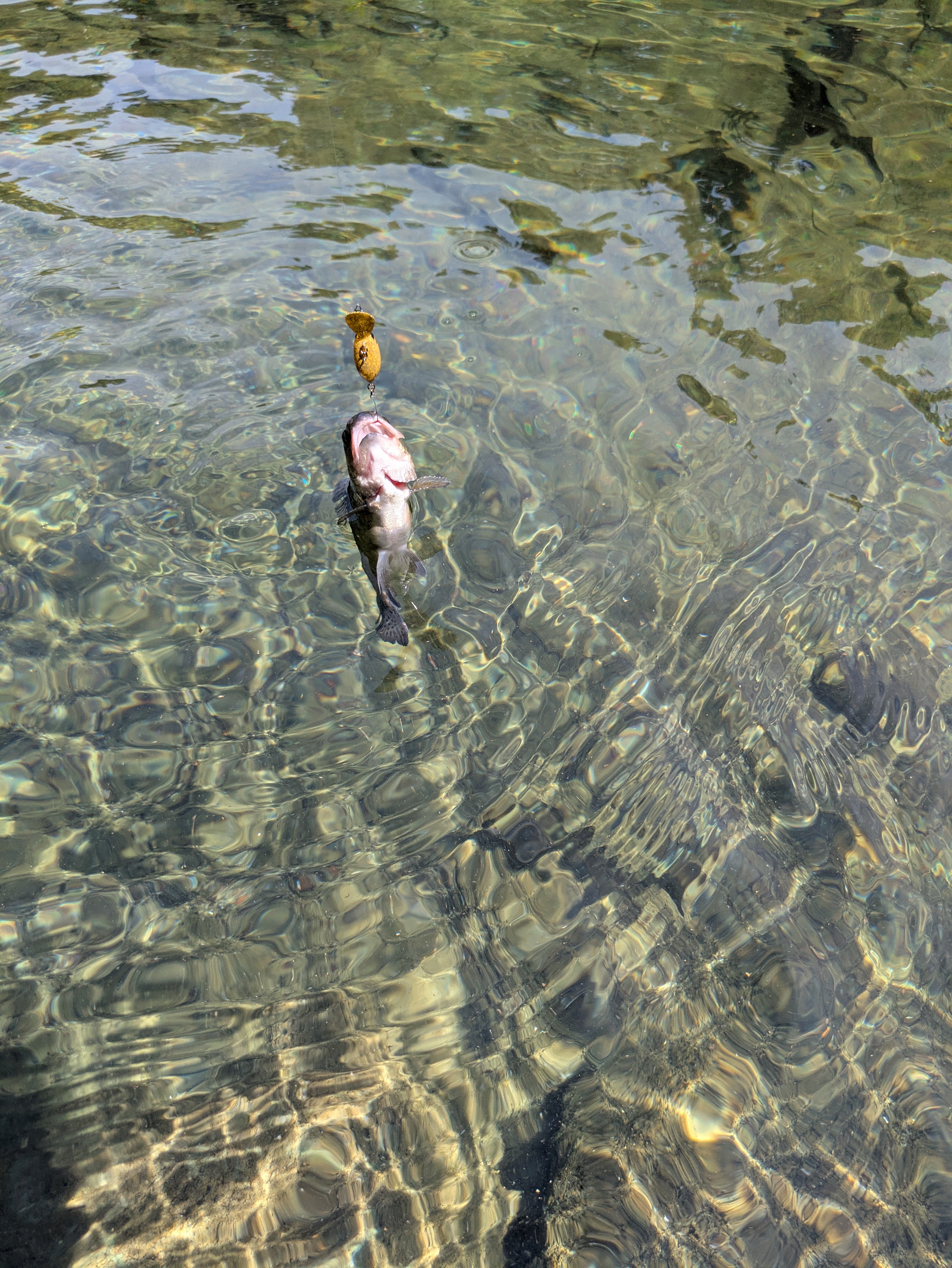 表層を夏らしくやろうとしましたがあんまりだったので中層をマイクロで!と思いましたが喰うけどあまがみ過ぎて針が残らないのでクランクボトムへ逃げました。