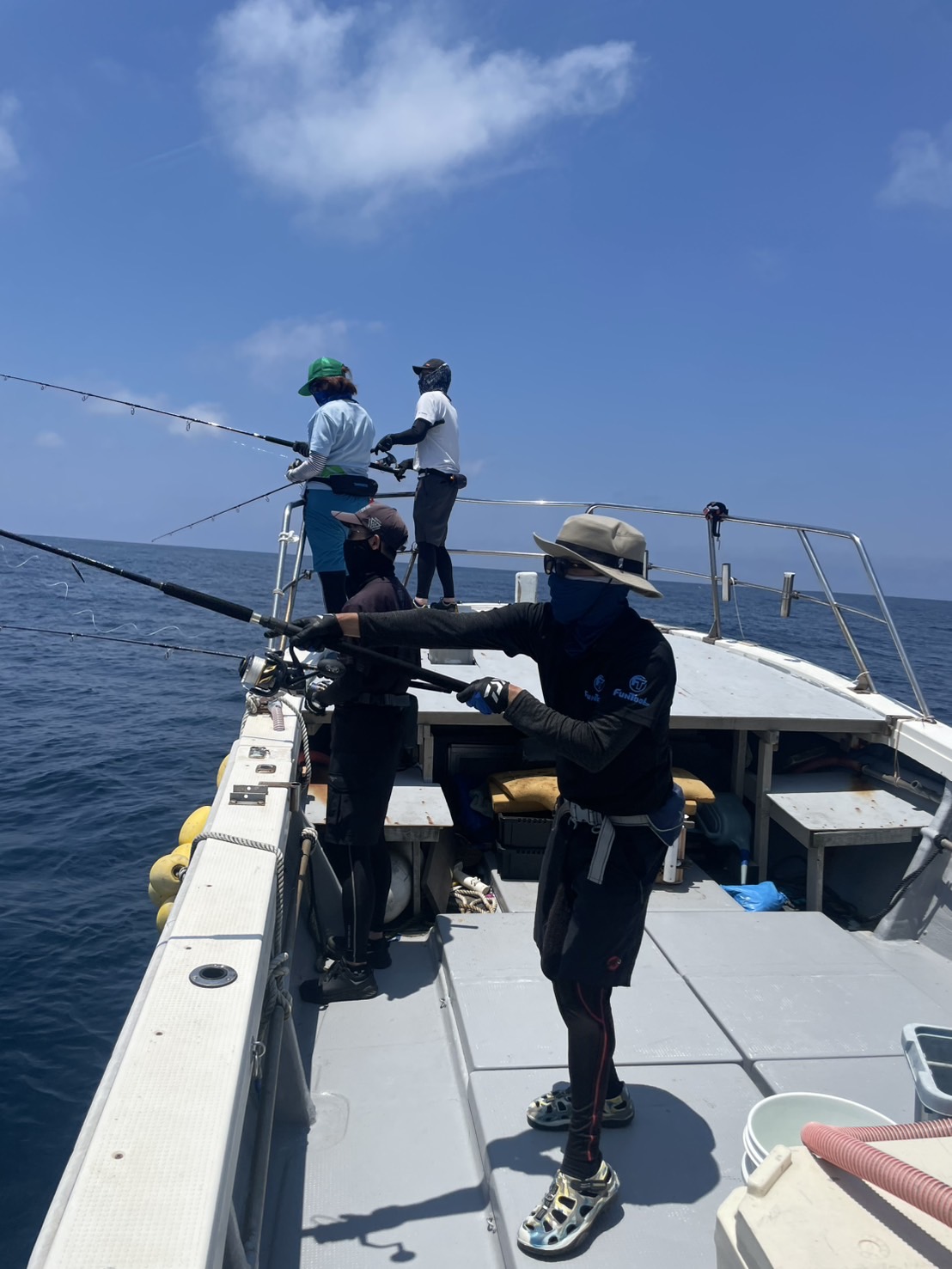 そうこうしているうちに一本釣りの船が来ますがあんまり釣れていない様子。カツオは常に水面に出ているので最後まで狙いましたが13時ごろにタイムアップ。前日までは良かったらしいのですが、濁りが入って活性がやや下がっているとの事。まだまだシーズン始まったばかりなのでめげずにチャレンジします!