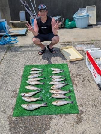 ポイントに着いてからすぐイサキの当たりがありました。前半は良いペースで釣れましたが後半は仕掛けのトラブルやカツオの猛攻によりペースダウン。最終18匹で終了でした。