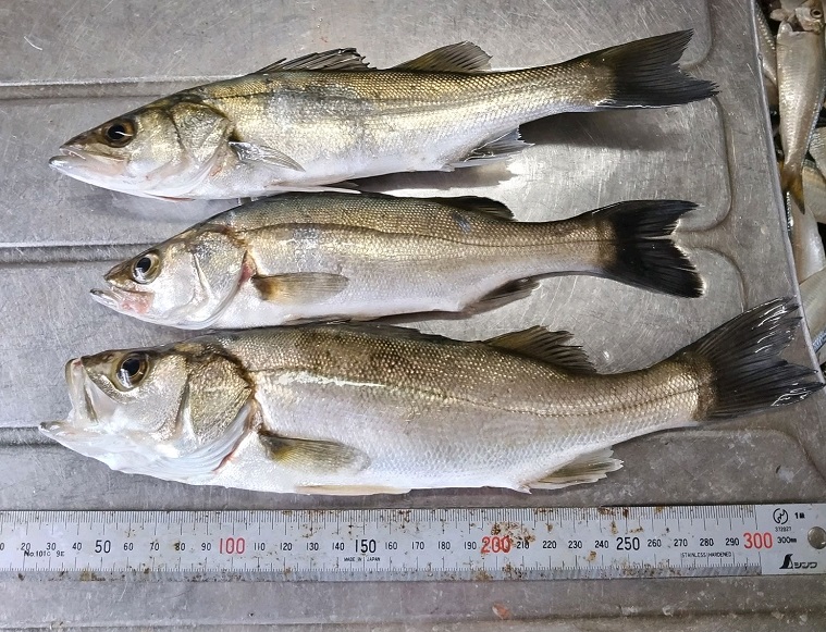 暗くなりかけた頃から投げ始めますがフグの猛攻でどうしようもなく移動しながら探り来るくなった頃アジを見に行きますがサビキの方々が陣取っておられるので離れて投げてみて1匹かろうじて釣りますが移動、セイゴを狙ってみると2匹釣れて沈黙したのですが地味なアタリが出てシッカリ掛けると重い魚が走り出す。これはセイゴではなく昼間のクロダイと同じ引きなのですが昼間の魚より強い~ エステル05号が無くなりそうなので追い掛けてラインを回収しながら何とか寄せに掛かりますが全然寄らず止めるのがやっとの状況、何とか20ー30mの距離まで寄せたよころでマサカのラインブレイク・・・一気に疲れが,,, 場所移動して 投げてみると1発セイゴが掛かり確保して次を狙うと重い魚が掛かりますが掛かりが浅くバレる。夜中の12時コレ以上は体力が持たないので終了です。