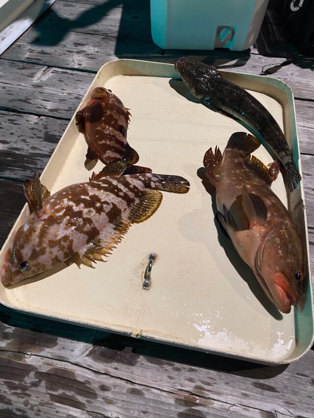 仕事終わりに四日市の伊勢湾マリーナから出船の伊勢湾マリーナフィッシングガイド様へお邪魔してきました!当日は南風が吹き、少し荒れ気味。今回は最近好調のキジハタが釣りたい!!とのことで、各ポイントをランガンしてもらいました!四日市店の原田さん、アチックさんも同行し、早速釣り開始!まずは10mラインのボトムを、20gのジグヘッド、テキサスリグなどでボトムバンプしていきます。すると早速原田さんにヒット!よく超えた40㎝のキジハタでした!そして原田さんにまたしてもヒット!35㎝ほどのナイスキジハタ!ヒットルアーは一誠のジャコバグ3.2インチだそうです。四日市でこれほどキジハタが釣れるなんて・・・その後場所を転々とし、皆カサゴなどを量産!デカキジ狙い一択で貫いた自分は・・・ボウズでした★いいアタリあったのですが全て潜られてフックオフ・・・次回リベンジします。伊勢湾マリーナフィッシングガイドの増谷船長は、若いですが、ポイント、タイミング、釣り方、全て熟知しており、的確なアドバイスをしてくれるので、とても心強い船長さんです!ぜひに皆様も行ってみてください!