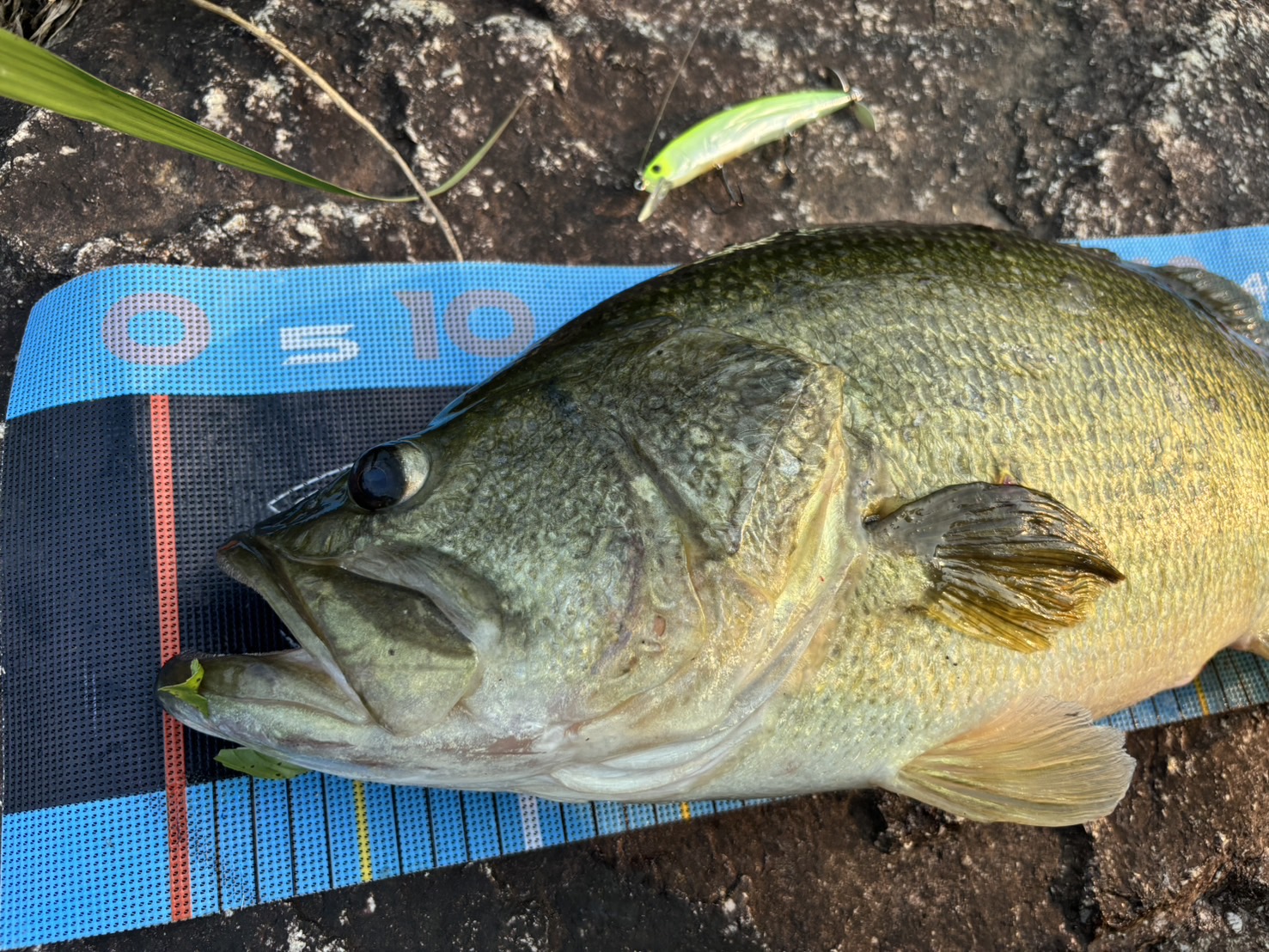 惜しくもロクマルではありませんでしたが、トップで釣れたビックワンなので気持ちの良い1匹でした!