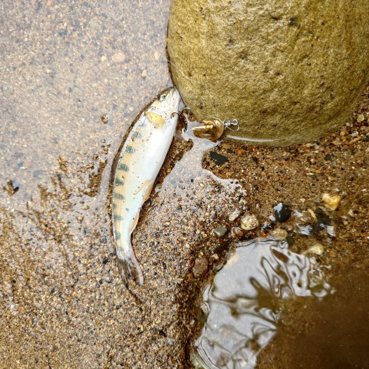 少し粘り淵を細かく探りますがチェイス1回のみと小さいヤマメ3匹ほどの釣果となってしまい