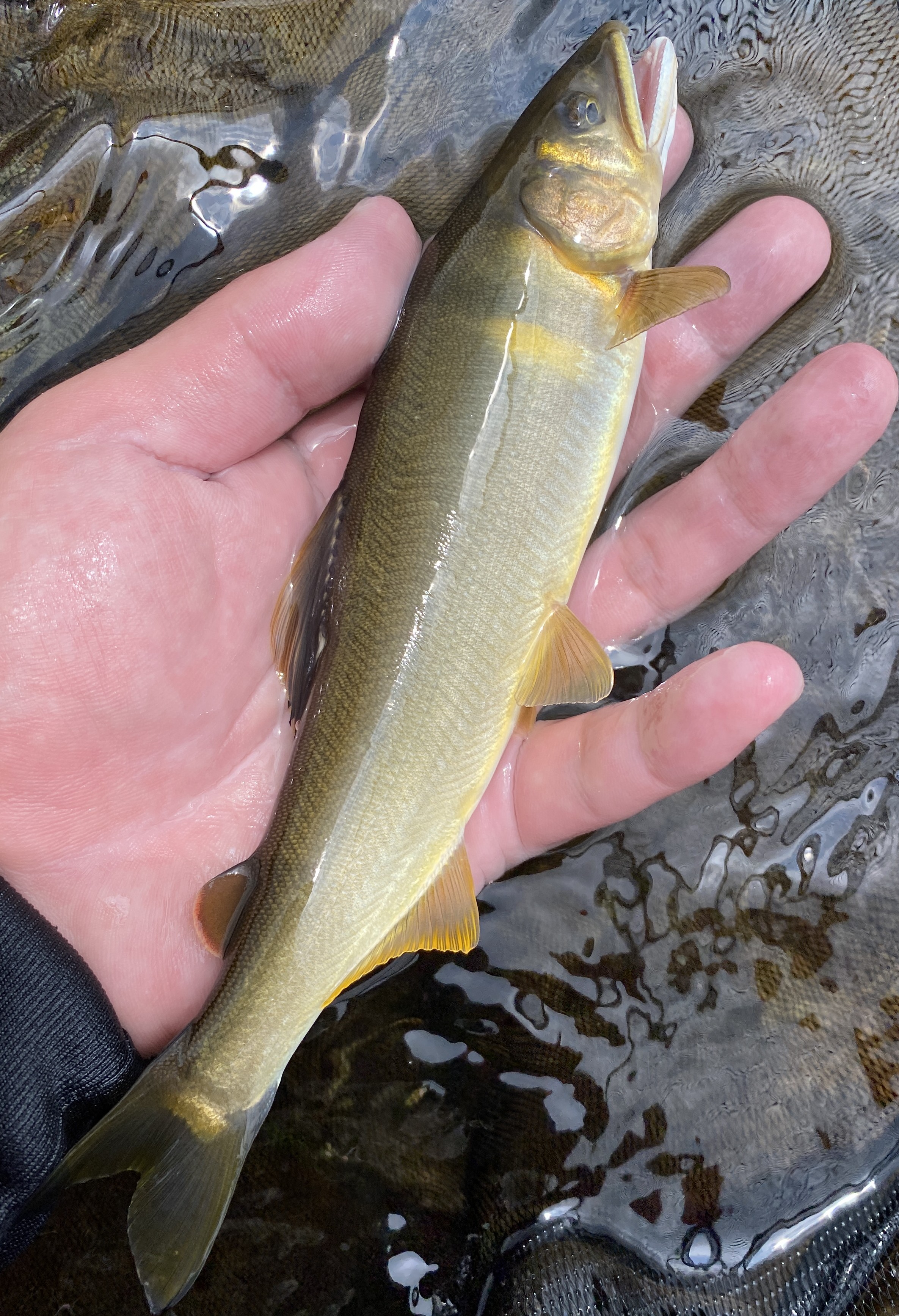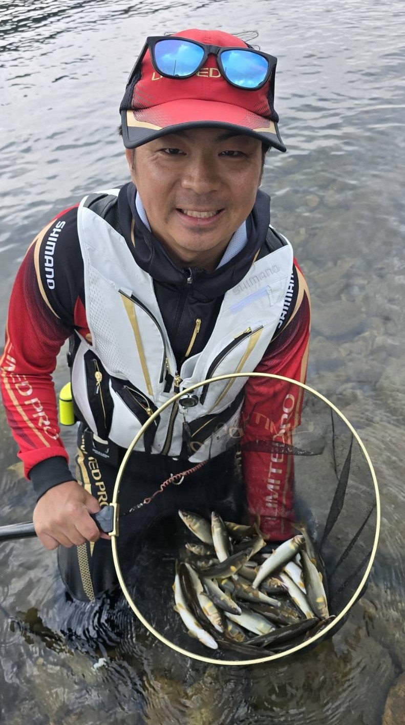 遅ればせながら、2025年初鮎へ!初鮎ながらに自分にとって初場所の久々野の益田川へ!ワクワクしながら9時ごろポイントへ到着。今年はシマノのリミプロベストを新調♪ファスナーがめちゃ開け閉めしやすい!!オススメです。早速瀬落ちから釣り上がることに。竿はスペシャル小太刀80-85、仕掛けは複合0.05号、鼻かん7mm、イカリはこだまの7号4本!少し渇水気味なので、まずは泳がせて天然オトリを確保!17㎝ほどの綺麗な鮎!そのまま緩い瀬で泳がせます。すると連続ヒット!オトリに余裕ができたので、そのまま水深のある流れの瀬へ!勢いの良い飛びつき鮎がキツイアタリで連続ヒット!沈めたらすぐにアタックしてきます。サイズも20㎝オーバーが混じりました!12時に昼食タイム!午前中は16匹、午後から同じ瀬を再度狙います。コンスタントに掛かっていき、16時までで最終オトリ抜き28匹で終わりました。鮎はたくさんおり、追い気も満々!これからサイズも良くなってさらに楽しくなりそうです。