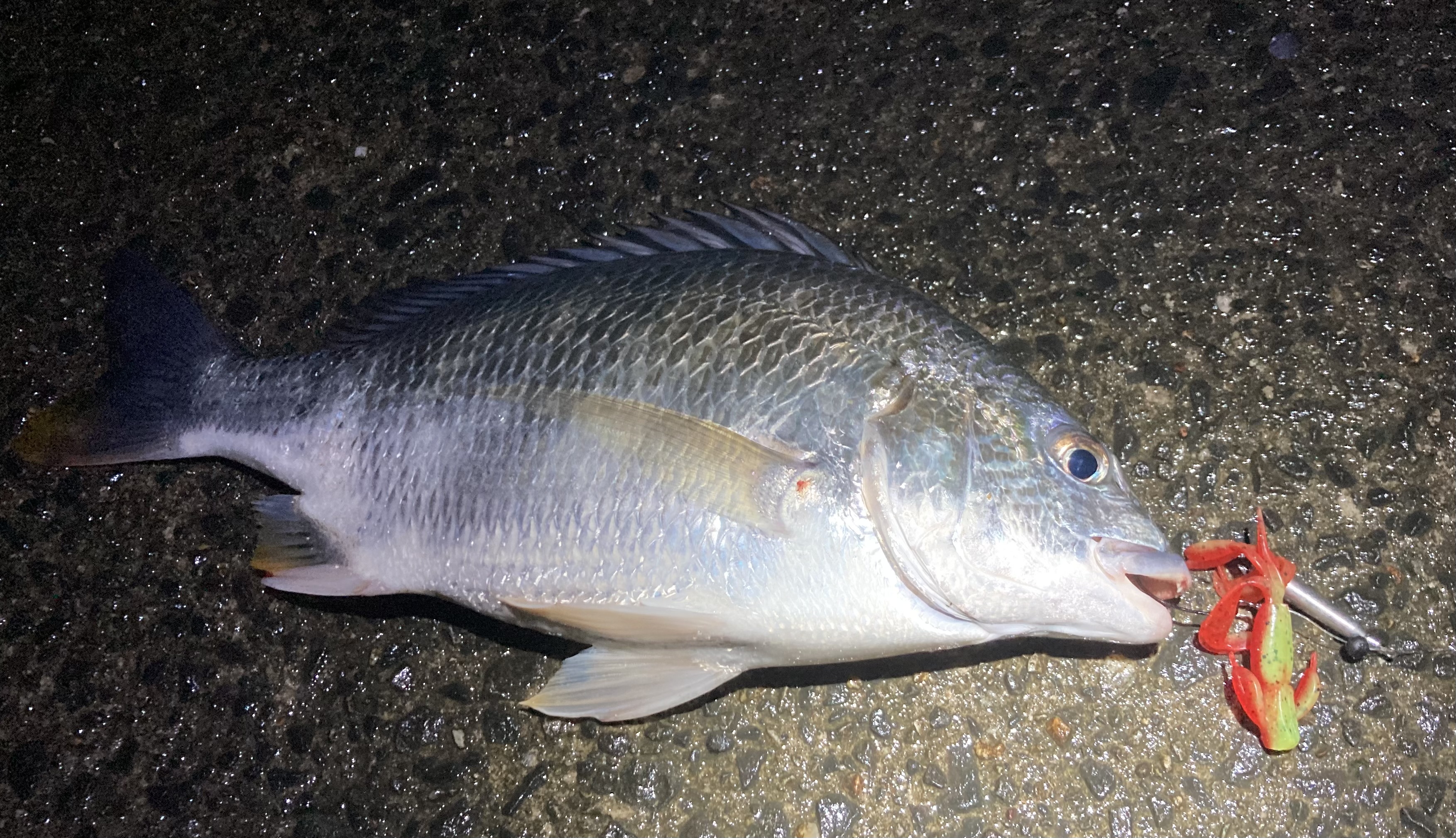近くで掛けたので瞬殺でしたが、40cmちょっとで腹パンパンのいいキビレでした。