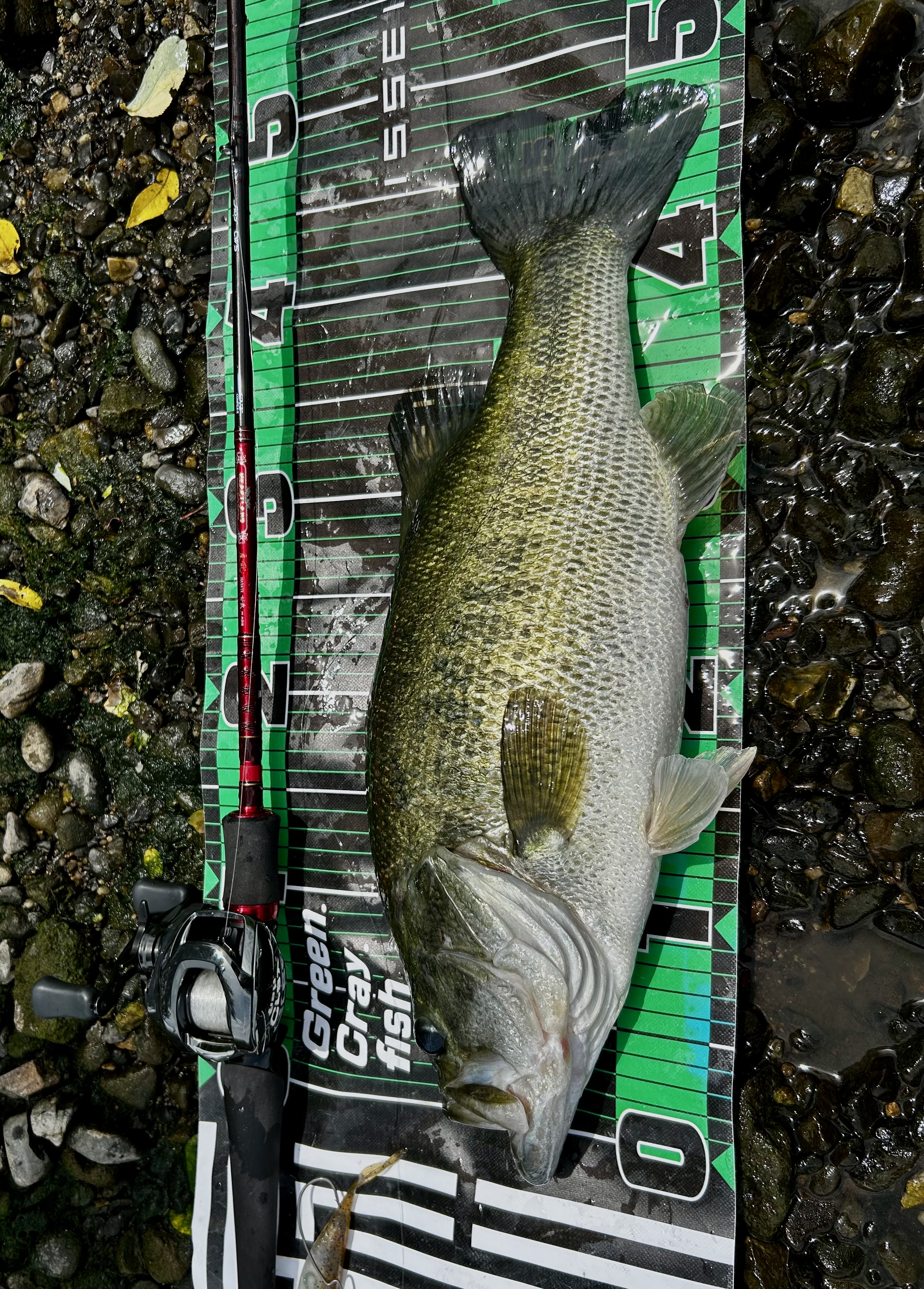 冷たい水+ウィードをもとめていくと良さそうな場所を発見し高比重を流した後いつものサカマタでヒット!今回は6インチでフックはがまかつ333の5/0。新規開拓成功で嬉しい1匹でしたが最近ずっと48cm止まり…琵琶湖様次は50アップでお願いします。