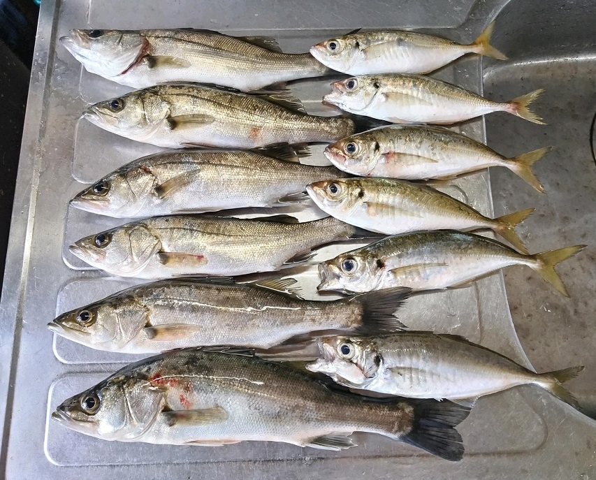 アジは21㌢ぐらいまででセイゴも30㌢ぐらいまでが釣れてくれました。昼間の釣りもしているのでかなり疲れていて帰りの運転も休憩して途中大雨もありゆっくり帰って来ました。