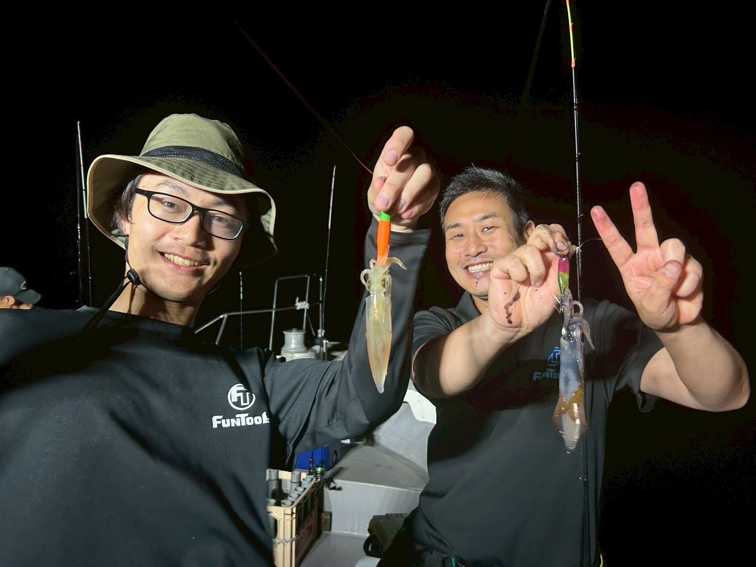 盛り上がりを見せている蒲郡出船のイカメタルに行ってきました。ポイントは水深25~30m。イカメタルは20~25号。ドロッパーはスッテやエギをつけて2段で狙います。PEは0.4~0.6号200m。夕方6時頃出船して12時沖上がりでした。夜の釣りなので船の電気は灯いていますがタックルボックス内を探したりするのにヘッドライトがあると便利です。当日はうねりと風があり通常の同付き仕掛けよりオモリグの方が圧倒的に釣れていました。私は同付き仕掛けのショートハリスしかもっていかず、ロッドも硬かったのですべてがあっておらずとても釣るのに苦労しました。2セット用意すると臨機応変に釣れるのでいいと思います。当日の棚は15~20m。後半は10m位になりました。潮が早かったので20号統一でしたが、潮が緩めば15号がいい時もあります。ドロッパーはスッテタイプをメインにエギを混ぜると反応が変わって色んな状況に対応できるので1つは持っておきましょう。