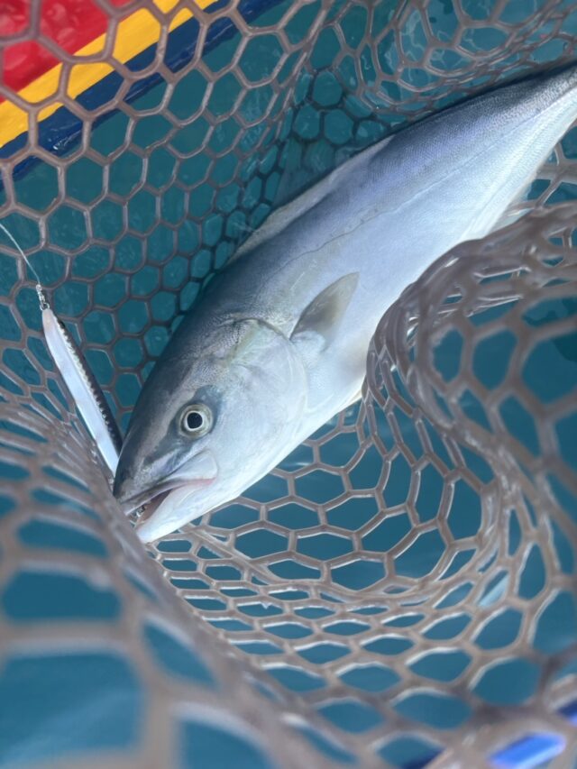 今回は富山から出艇してきました。5時半過ぎからエントリーし、岸から300mほどのポイントで小規模ボイルが発生!スミス サージャ-にブレードフックを付けたものをキャストし、一発目でハマチ!その後フィードポッパーでもう一本追加し満足したので水深100~140mあたりでスロージギングに変更しましたが、3時間ほど粘ってタチウオ1でした。途中でのバラシが複数あったので今後の課題となりました。暑すぎるので9:30頃に帰着。良いリフレッシュになりました。