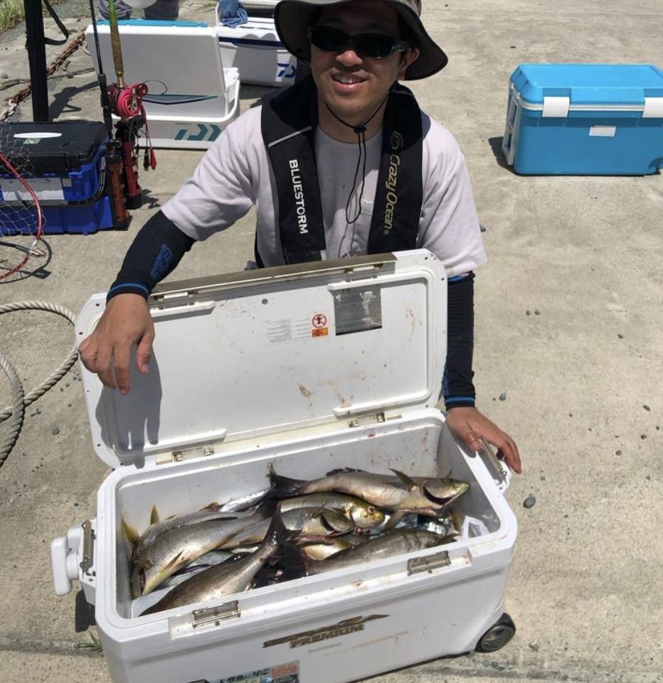 赤羽根港出船の丸万釣船さんにて青物&イサキ釣りに行って来ました、最初は浅い漁礁で吹き流し仕掛けで、小アジを掛けてから、そのまま泳がせてイナダ、ショゴを狙い釣れました、中型サイズのアジも混じりました。その後はイサキ釣りに、最初はハヤブサ 海戦イサキ吹き流しショート2号を使用しました、途中からソーダカツオが多くなり、イサキも40cm近く大きく2号以下の仕掛けですと仕掛けを切られてしまう為、ファンツール×ハヤブサ 最強!大アジ吹き流しハリス4号を使用しイサキも数を伸ばす事が出来ました。イサキは大型がまだまだ釣れています!ショゴも今後サイズが大きくなって来るので期待したいです!