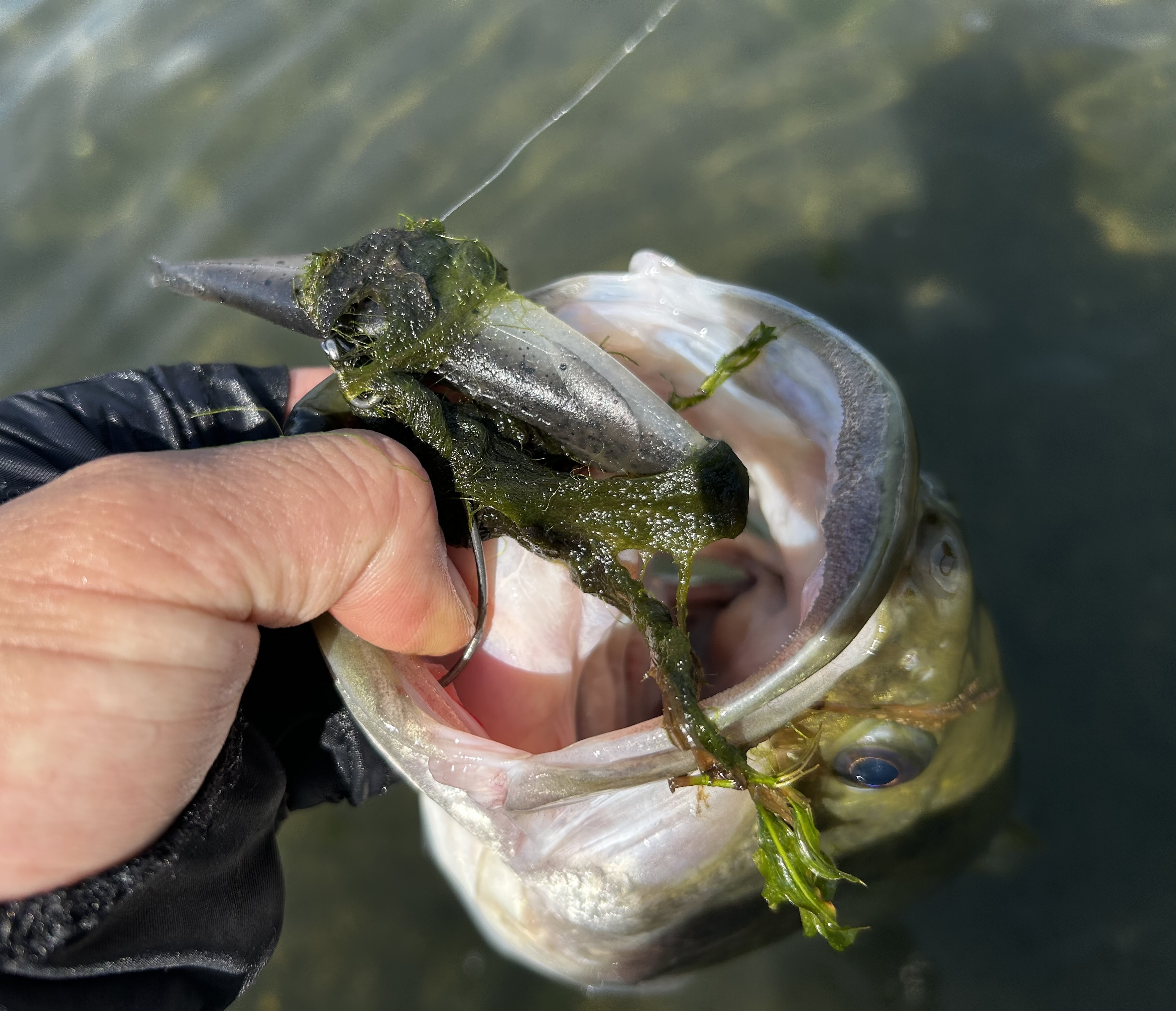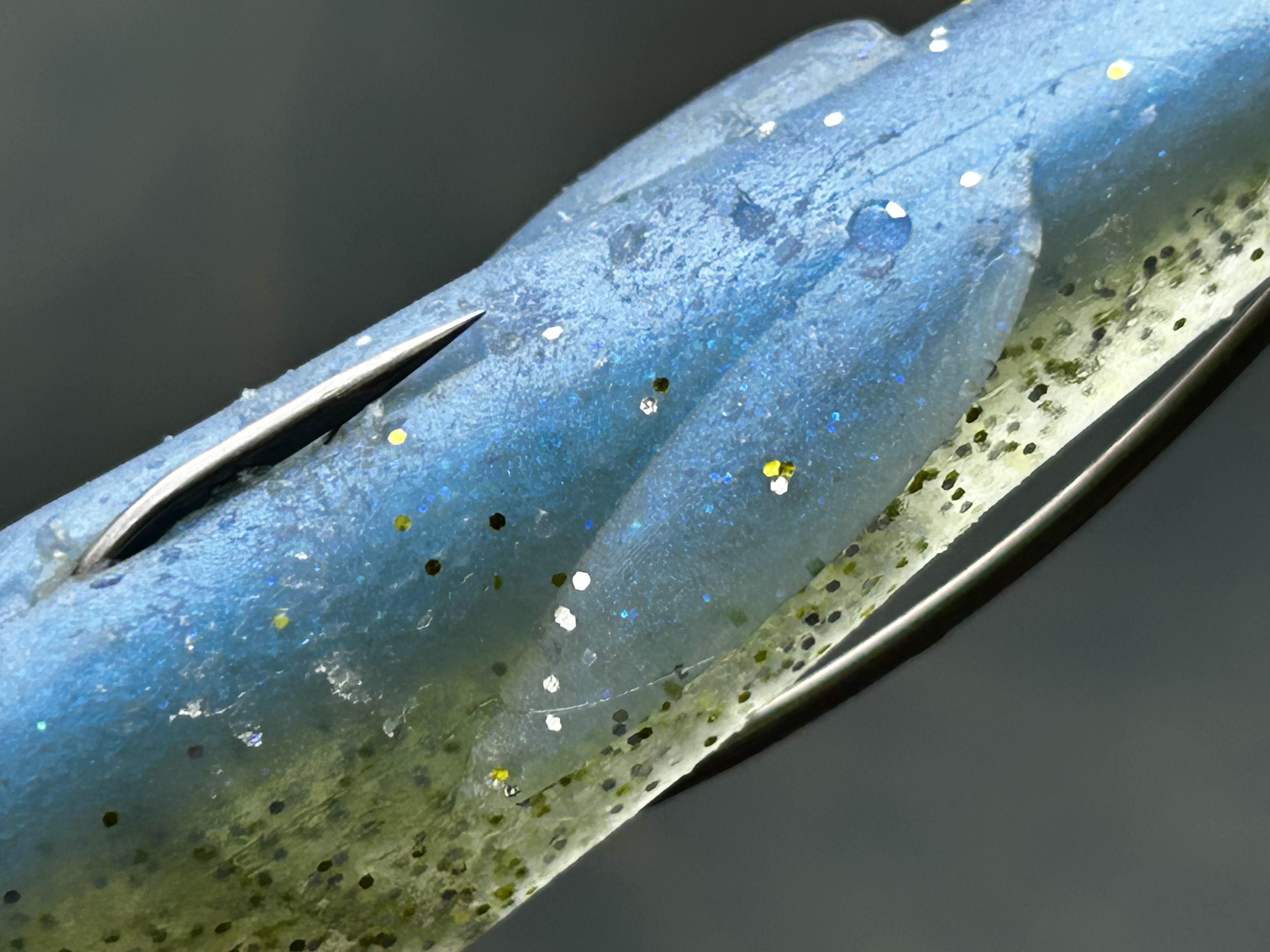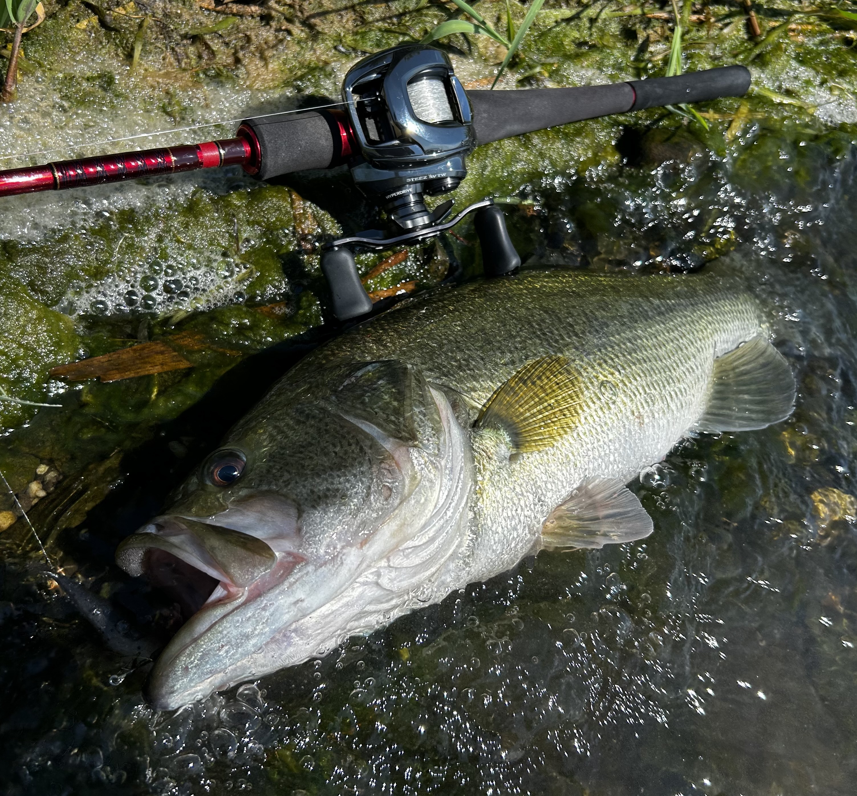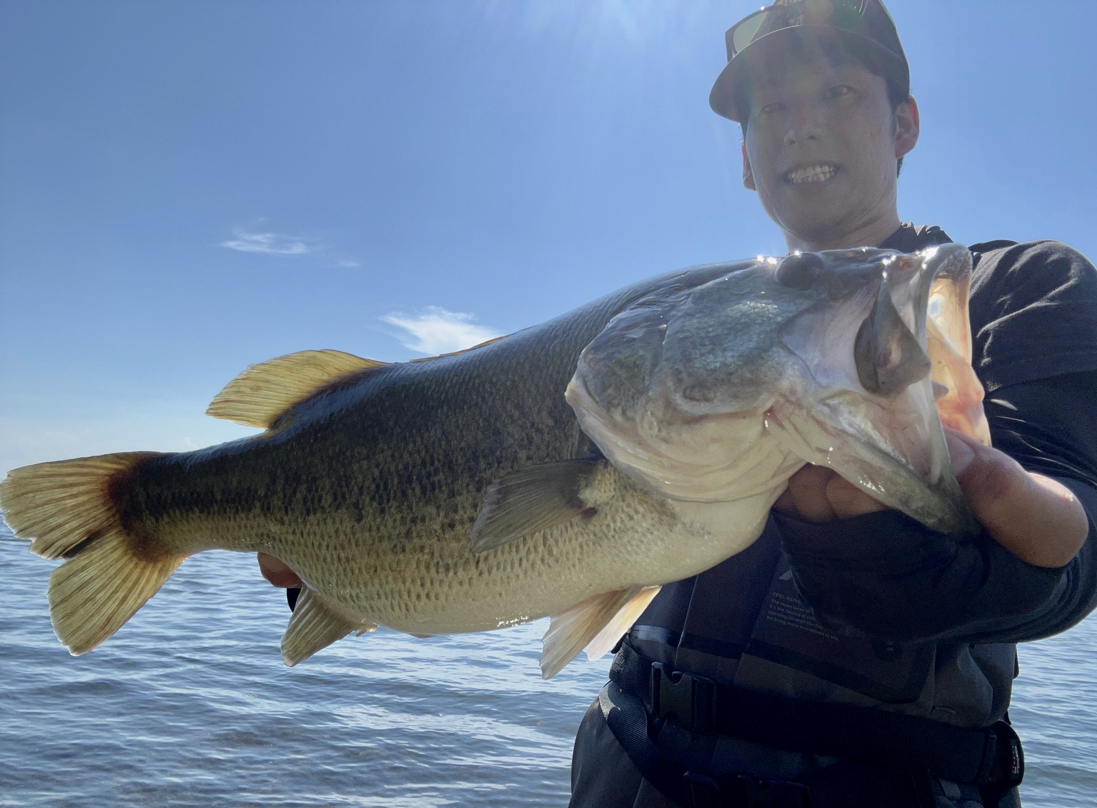 サカマタ6に早々ヒット!しかし動かないので、あれ?ウィードか?と戸惑っているとジャンプしてフックオフ…まだ食いそうなので今度は5インチに落として流し直すとステイ中にヒットで45cm。この時点で16時でしたがサイズアップを狙いたいので1時間移動。サカマタ8で流していくとガツンと硬い感触。フッキングするも何もなく、しかしピックアップするとワームがズレてガッツリ歯形が…結局その後は何もなく終了。ミスの目立つ日でした…