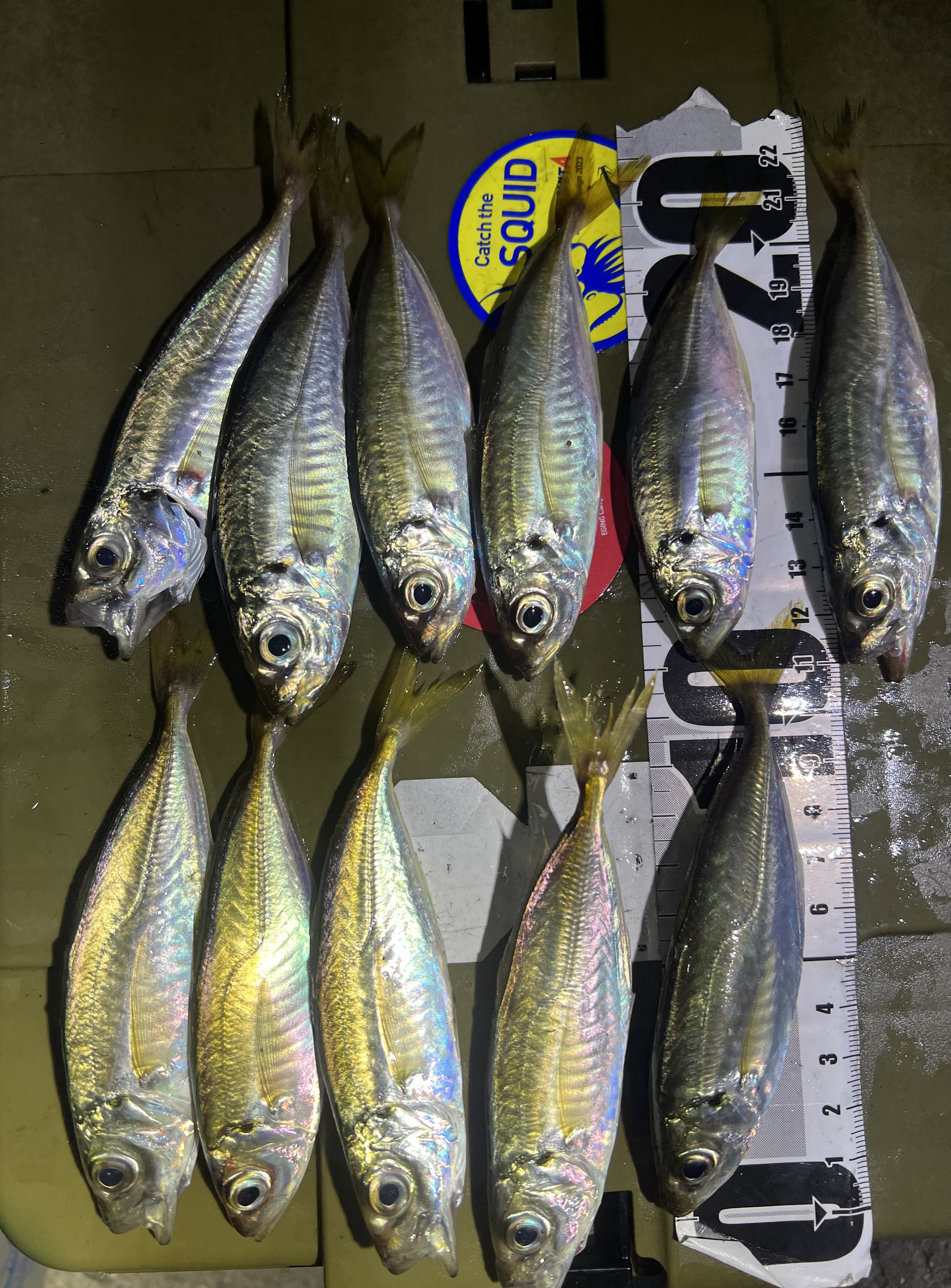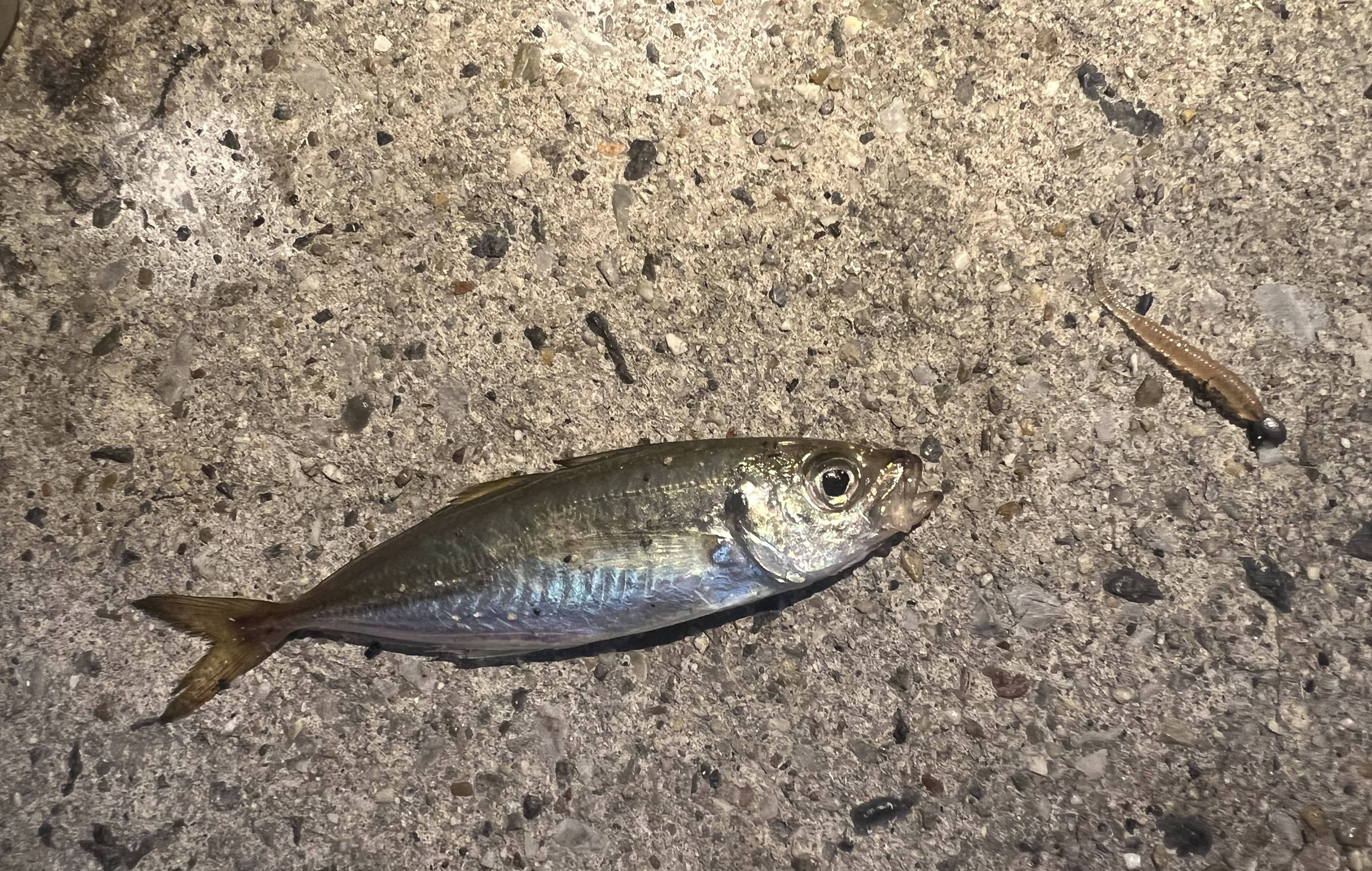 この日はテスト勉強の合間に我慢できず息抜きに釣りに行ってきました!ポイントに着くと強風!表層に魚がいるもののルアーを通してもガン無視。とりあえずレンジを下げて潮に流すようにフォールを重点的にして探っていくと…ココッとしたアタリがあったためフッキング!小さめですがアジが釣れてくれました。その後もあたりは少ないものの同じレンジにワームを通してなんとか2時間で11匹釣ることが出来ました。使用ルアーはレベロク様の豆アジヘッド0.4~0.7gにレインズ様のチビアジアダーを使用しました。風が強くてかなり釣りがしにくかったですが、何とかポツポツ釣れてよかったです!