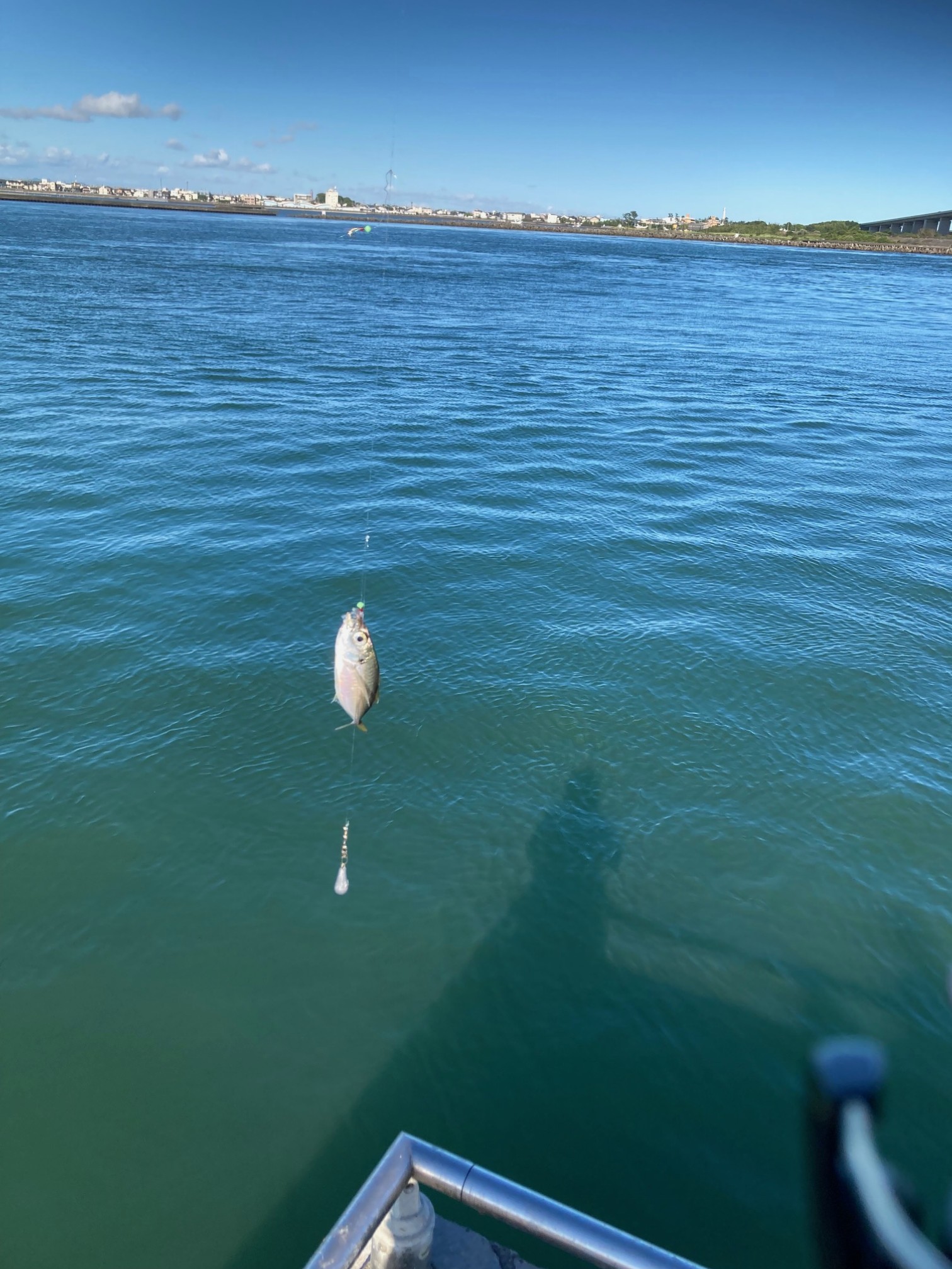 こりゃいかんという事でとりあえずサビキも釣れていたのでセットしてやってみると、まあそんなにあまくはない(笑)何とか釣りたくて頑張っていると根がかり・・・。からの外れた(喜)からの、ん?なんか重いと思ったらシマイサキでした!とりあえず魚GET!その後はサッパが釣れ、潮が速くなる前に釣っておかなければならないことを思い出し、今度はタコエギとイカエギのダブルでオモリは同じく15号。今度は10数投で来ましたがなんとまたしても根がかりからのロスト・・・(辛)後2個(一回分)しか残ってなく周りでタコ釣りされている方もいましたが誰も釣れてないので、とりあえず今回はこれくらいにしといてやってサビキを続行して小アジを2匹追加して終了としました。なかなかの貧果でしたがアミエビを撒いてやっている方はアジメインにたくさん釣られてました。たまに豆アジも釣れてましたが5号くらいのサビキで良さそうでした。