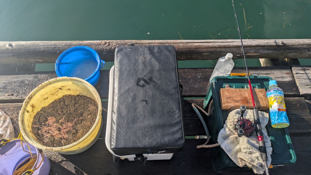 当日はダンゴも準備して、まずはアジを釣りながら