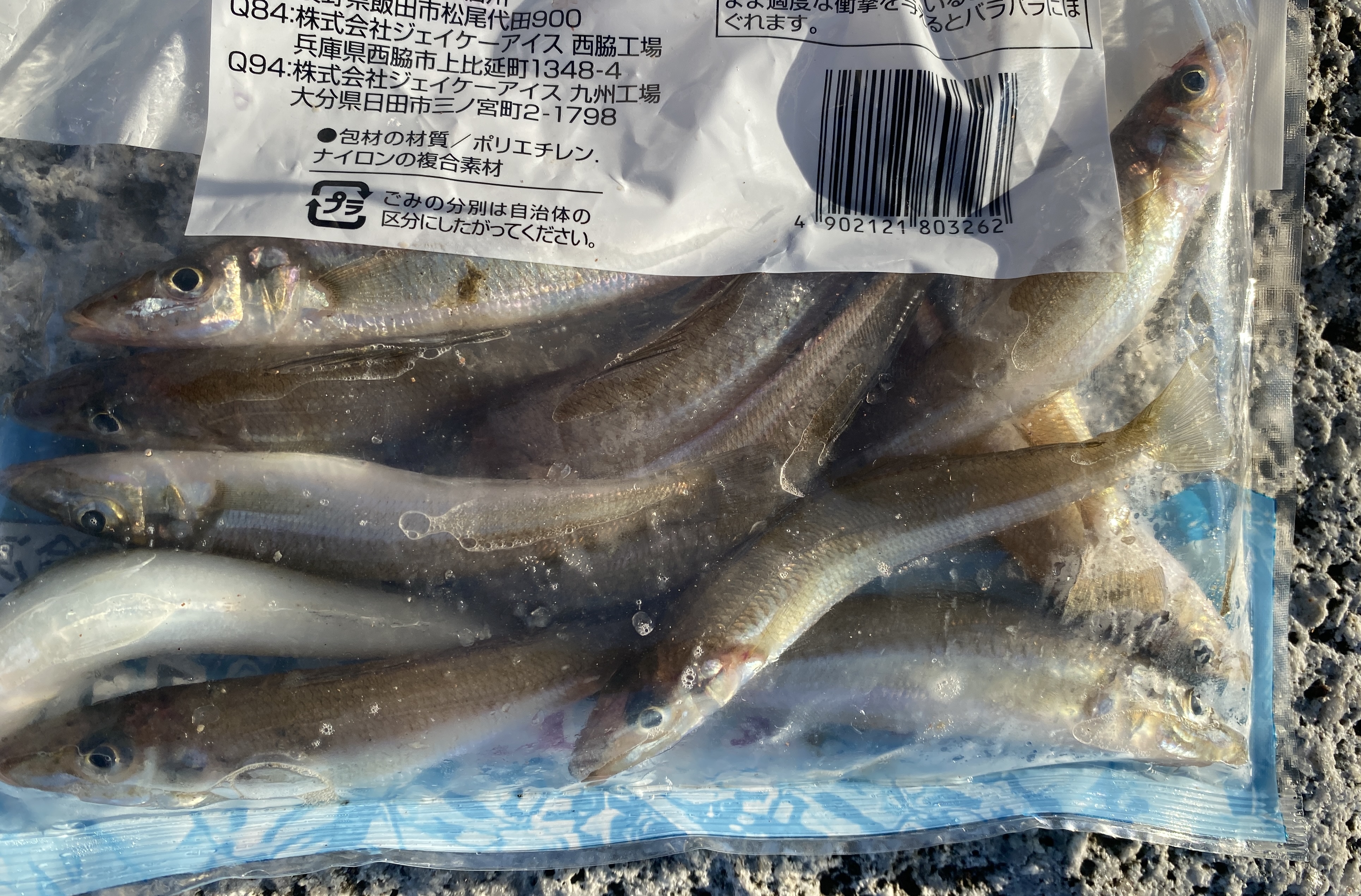 開始して、巻いて止めてを繰り返していると、ピクピクと当たりが!回収してみるとチャリコ!その後も、チャリコ、セイゴが連発している中、急にキスに変化しました。その後、一投1匹の勢いで、1時間近くして14匹まで増やせました。