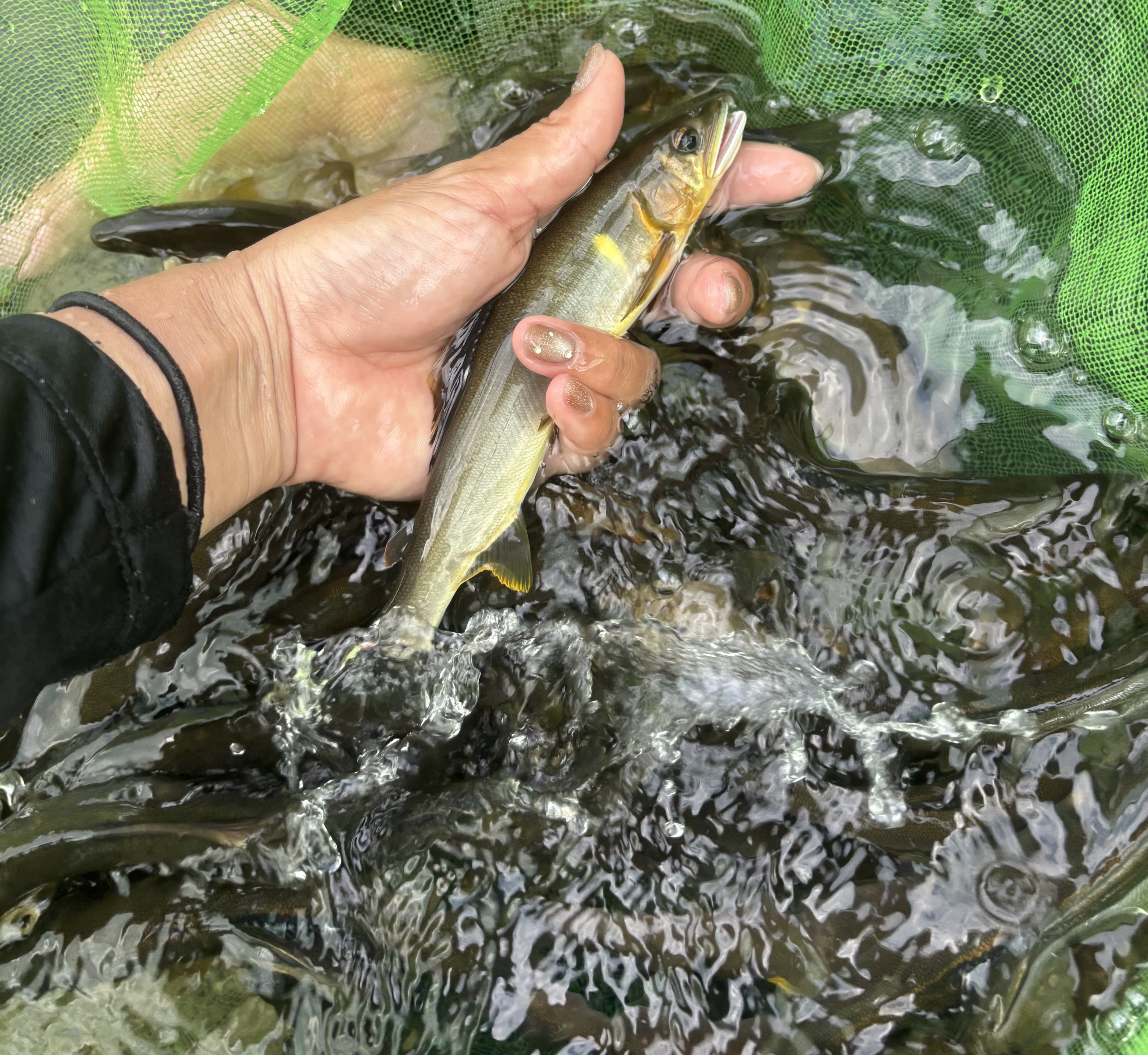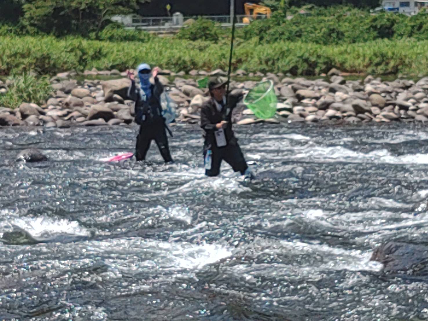 参加者は猛者ばかりの男性陣の中、私は今回が初参加で、しかも唯一の女性ということで、ちょっと不安だったので経験豊富な師匠にセコンドに付いてもらい技術的なアドバイスのほかに、根掛かり外しや、危険回避のための助言をしていただきました。アユも川もとても状態が良いということなので瀬を中心に狙い開始早々連発!かなりいいペースで循環でき、込み31匹で結果はまさかの2位!嬉しい反面ほんとに私がもらってよかったのかな…ってちょっと気まずかったです😅午後からは、やった事のないキツイ瀬を中心に14時~16時までやりましたが、ビリも多くうまく回せず抜き11匹追加でトータル40匹でまたまた自己記録更新!
