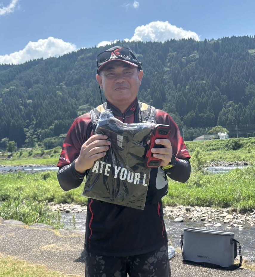とりあえず中元橋下流の通称三本瀬の瀬肩からスタート。 すると開始早々横で釣っていた奈尾さんが2連発の入れ掛! それを見て慌てて竿を出すがなかなか掛からず、10分ぐらいしてようやく掛かるも10㎝ぐらいのビリ鮎・・・。 なかなかオトリが変わらず対岸に移動し、ようやく18㎝クラスの鮎が掛かり一安心。 その後も鮎は掛かるが手前でポロリを二連発・・・。 なかなかペースをつかめないまま検量時間が近くなりタイムアップ! 結局18匹で8位でした・・・ しかし、20.5㎝の良型を釣り上げ見事大物賞を頂きました。