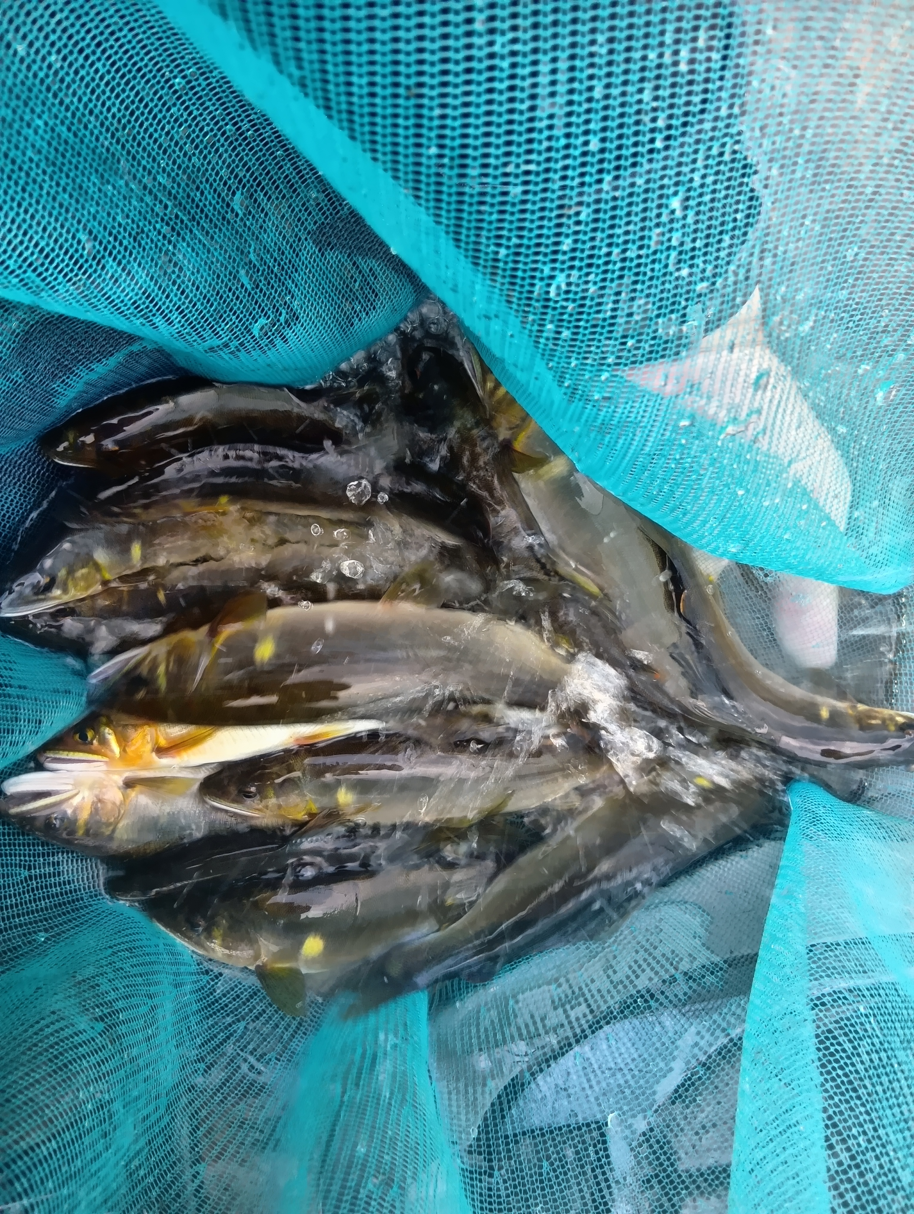 毎年恒例の社内鮎釣り大会に参加きました。今回は長良川郡上の白鳥開催。前情報から白鳥のみ良型が多いとのことなので、あゆパークの少し上流からスタート。全体的に浅く、大きめの石の間の流れを釣っていく感じです。開始早々掛かってくれて一安心です。背針を付けて浅場を泳がせ+引き釣りもしながら細かく探ると小型ですがぽつぽつ掛かってくれます。大石が沈んでいる水深のある攻めにくいポイントでは20cmほどの良型ばかりでした。その後も朝一のポイントをやり直して数匹追加して終了!オトリ抜き21匹でした。昨年の大会ほどは釣れませんでしたが、満足な釣果!他の参加者の情報を聞いて午後からは和合橋と高速道路の間へ。急瀬中心に狙うとサイズはイマイチですが、良いアタリしてくれます!!なぜか蹴られるようなアタリが多く、16時過ぎまででオトリ抜き13匹でした。