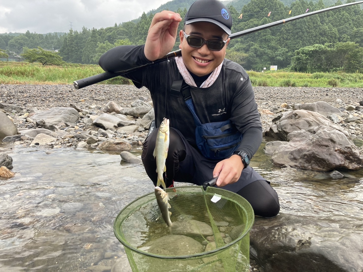 友釣りは1年ぶり2度目なので、四日市店の家坂店長とFLD四日市店の竹内店長にレクチャーし直してもらいました。