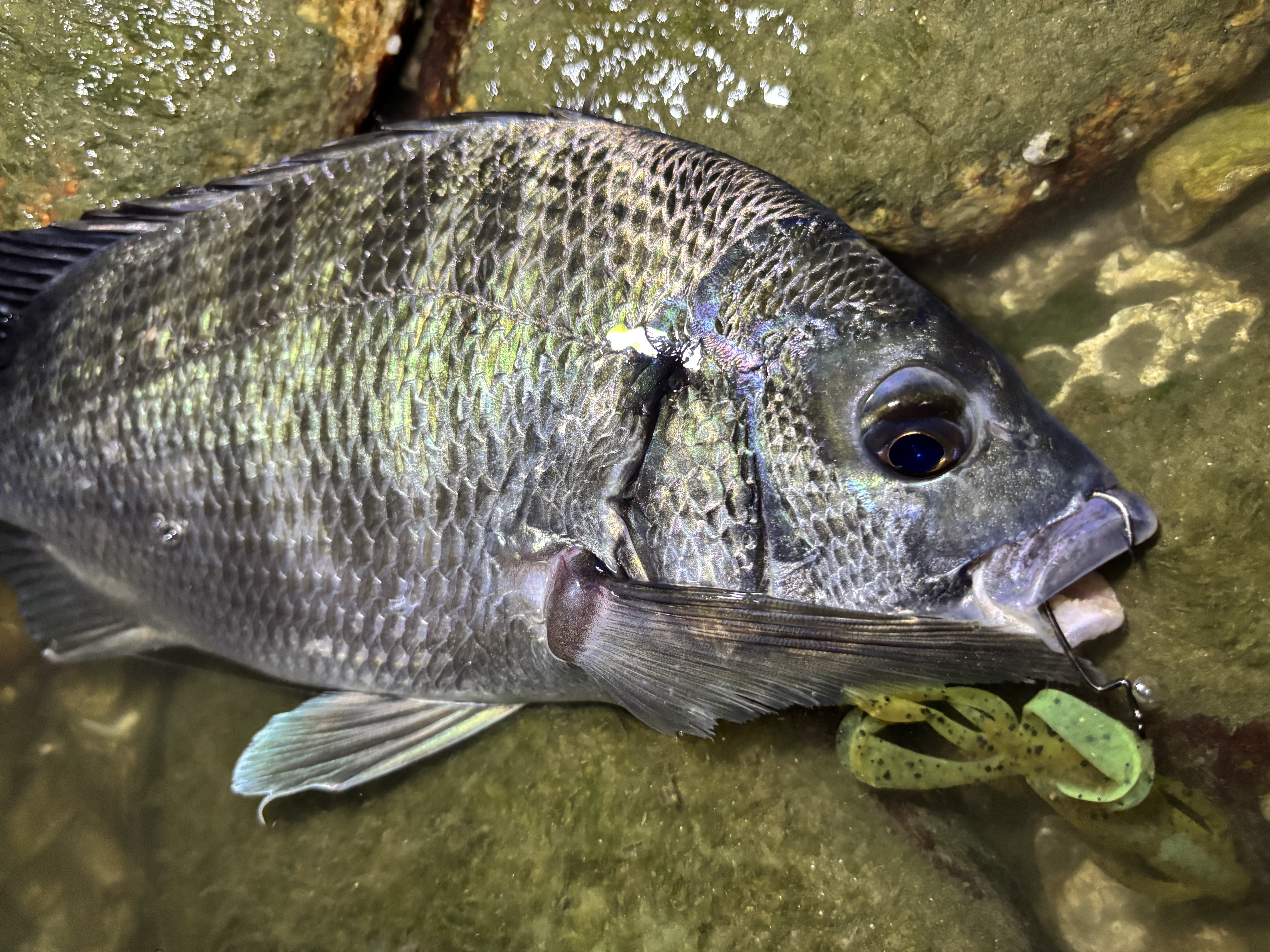 釣れたのは20㎝台の可愛いやつ。色々な状況に対応できるようにワーム、フックのサイズは幅広く持っていきましょう!笑