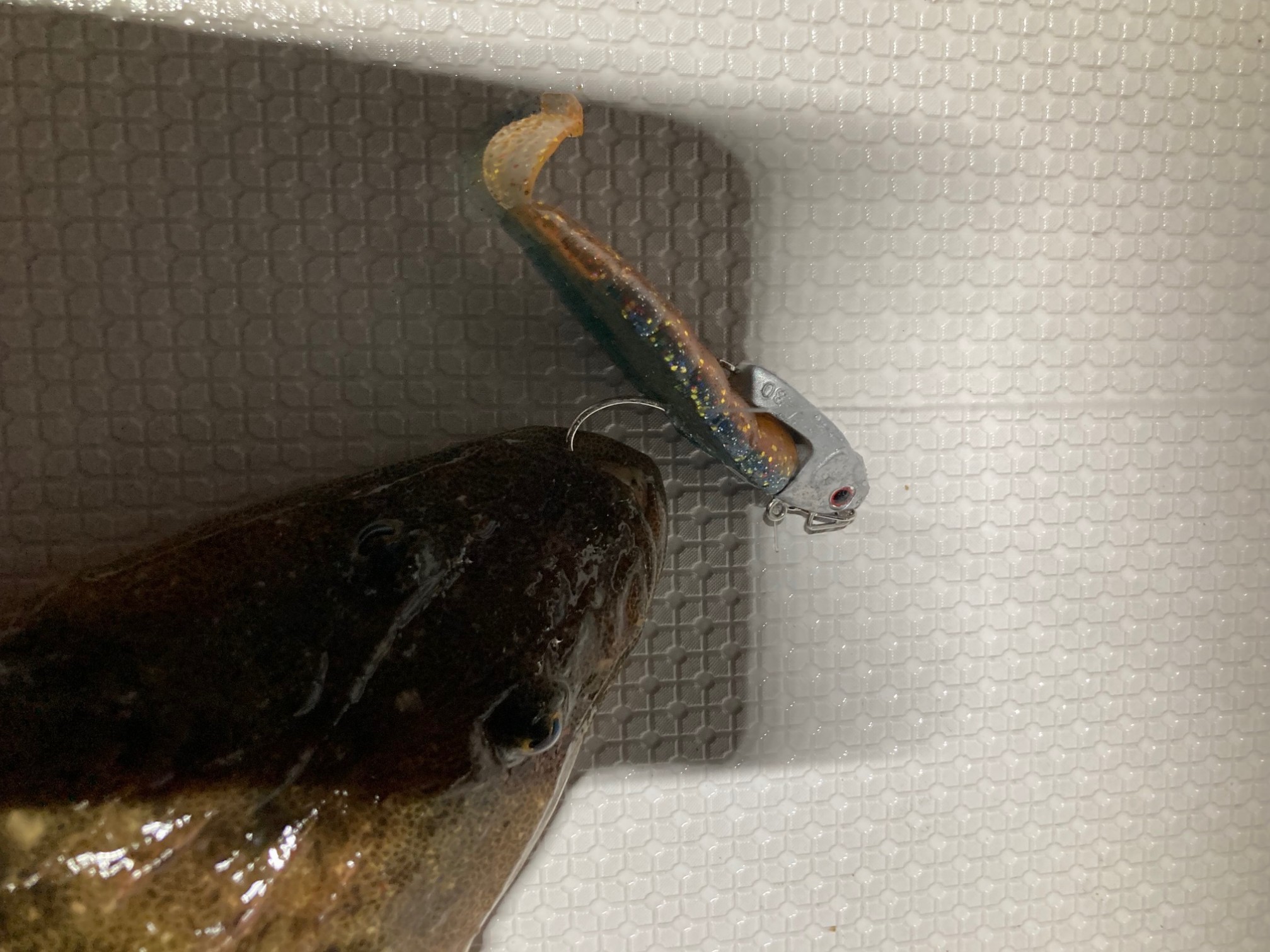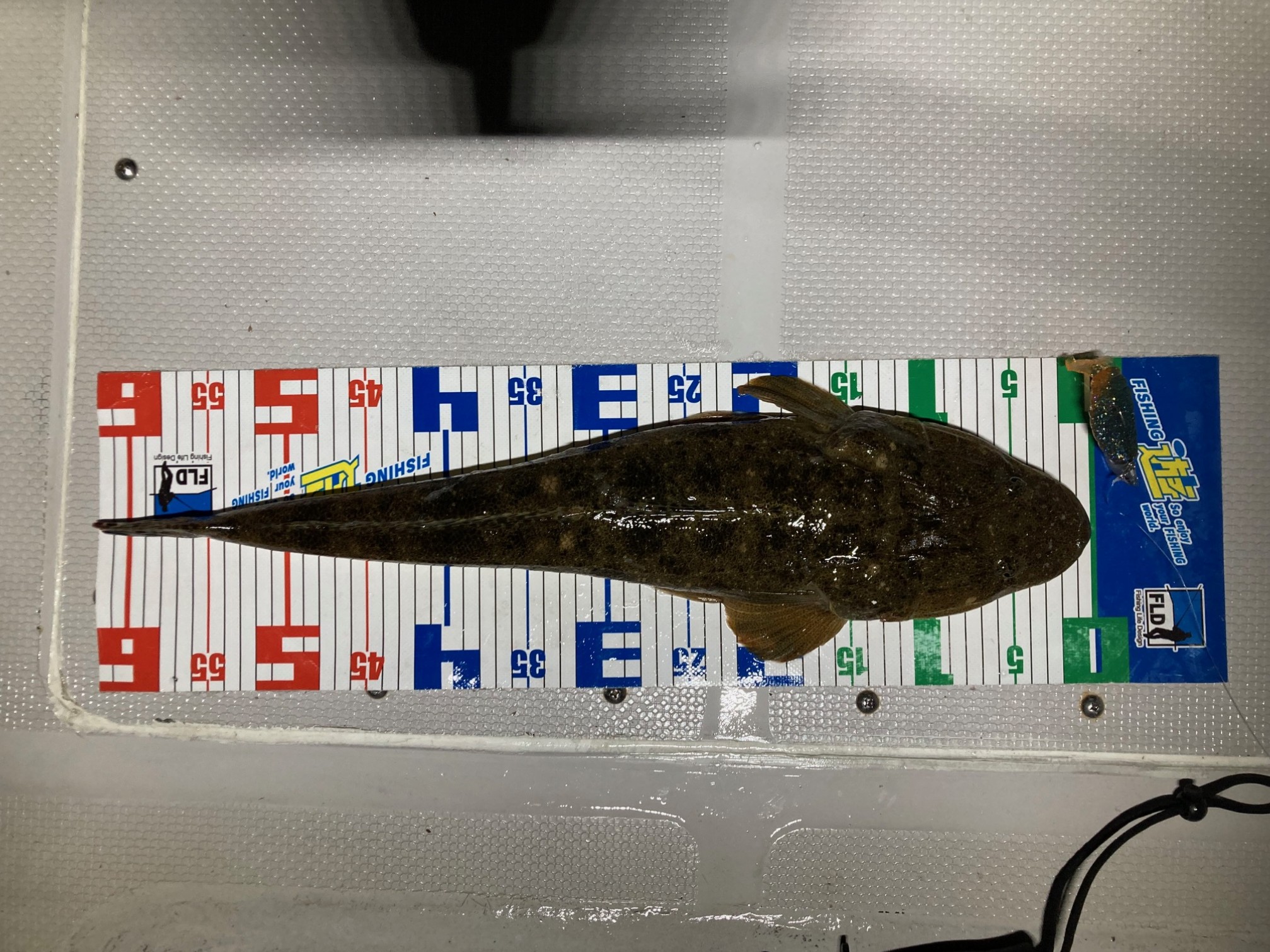 最初は満潮潮止まりで潮位が高いのでマゴチからとのことで、ファーストヒットはK君がVJでGET!ルアーのサイズが小さい方が良いかもとの事で前回全くダメだったバルトの3.5インチを使用すると私にも56cmの写真のマゴチが釣れました!!その後が凄かった☆船長さんの弟さんがSSギルでHIT!その後なんとロクマルも上がり、気が付けばみんなSSギルが付いてる(笑)N君もGETからの更にロクマルまで!!そしてK君もGETで気づけば自分だけ釣れてない・・・。その後も頑張りましたがタコの時間が無くなるので移動。タコは言われた通りの難しさで誰も釣れず終了となりました。あとで分析すると夜のマゴチはゆっくりスイミングさせるのが良かったみたいです。昼の早い釣りをしていたのがミスでした。次回はタイラバなので頑張って釣ってきます!