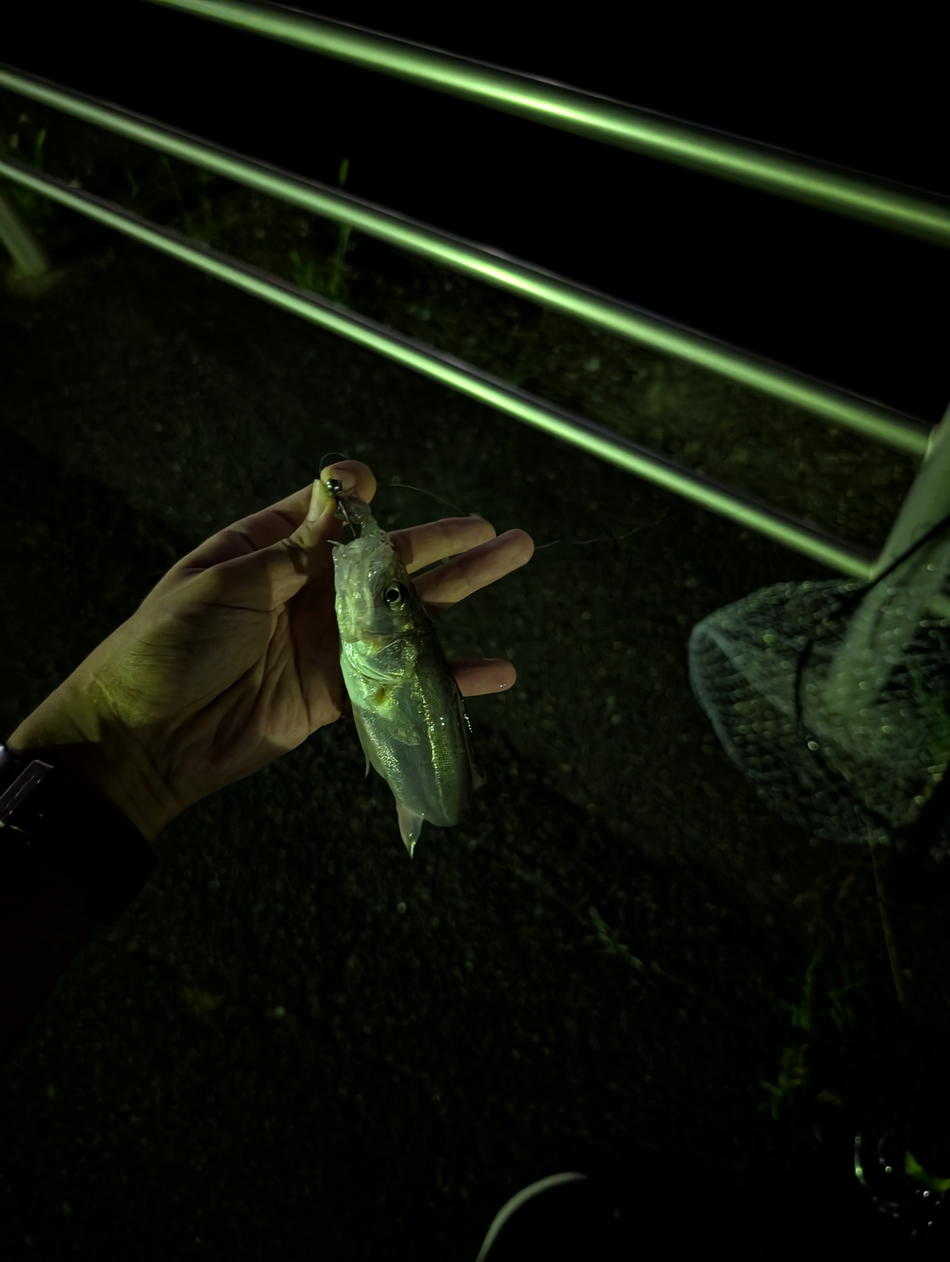 夜はチニングに挑戦しましたが、メインのチヌは釣れずセイゴが釣れてくれました!
